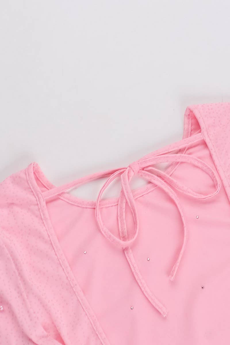 BEADED BACKLESS LONG SLEEVE BODYCON MINI DRESS