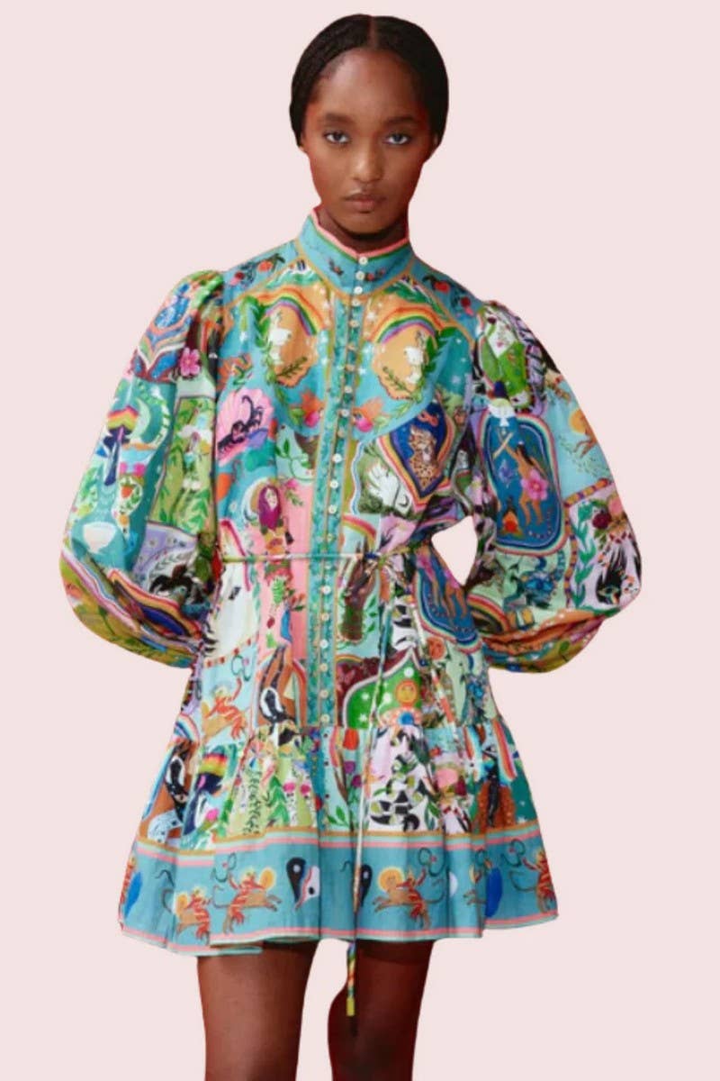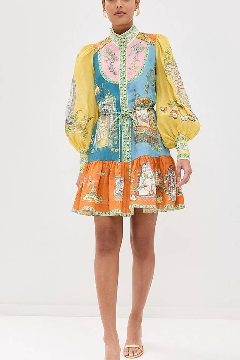 FASHIONABLE PUFF SLEEVE RUFFLE HEM DRESS