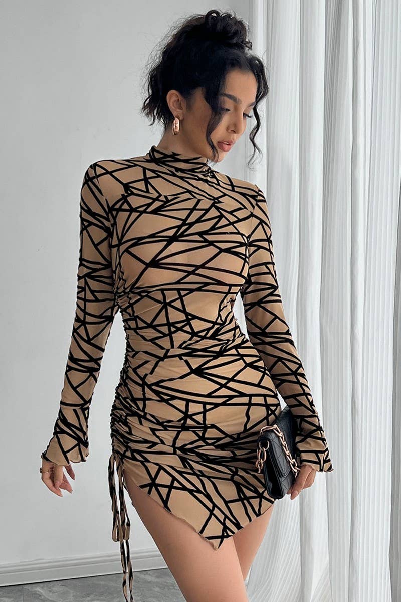 SIDE RUCHED MOCK NECK ASYMMETRICAL MINI DRESS