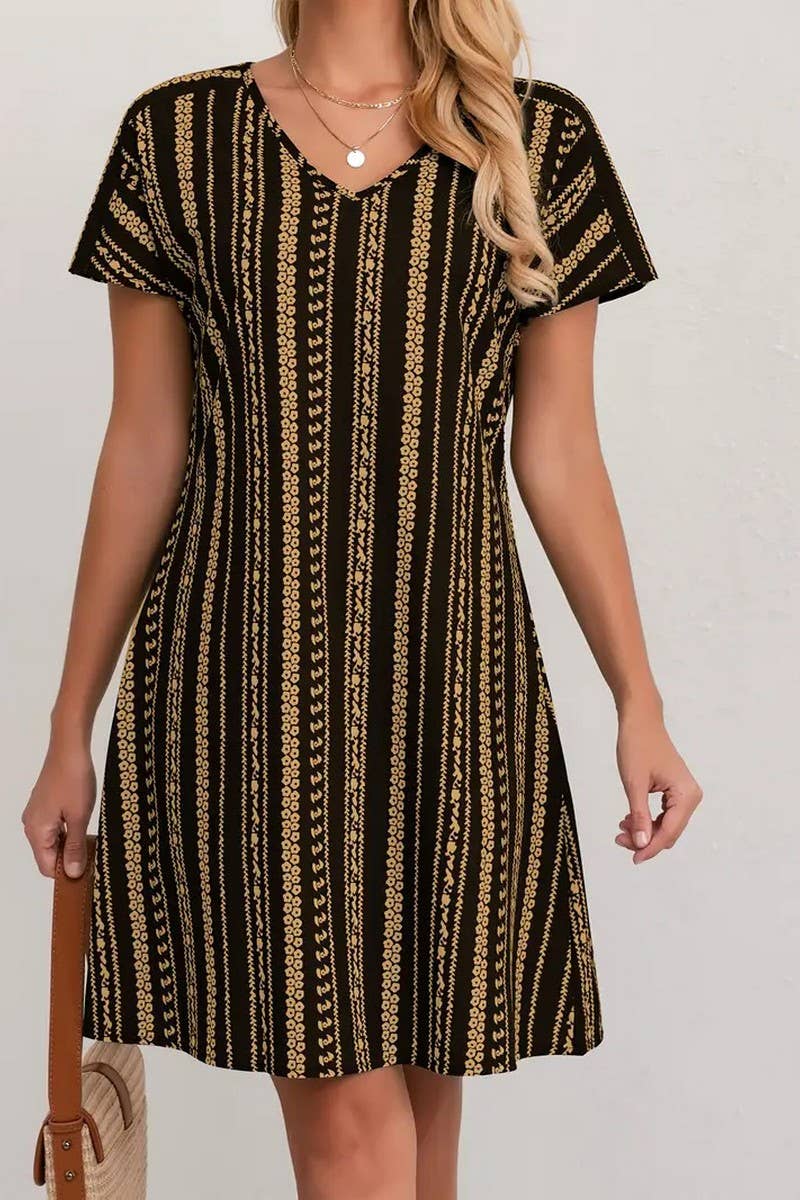 V-NECK FLORAL PRINT SHORT SLEEVE DRESS