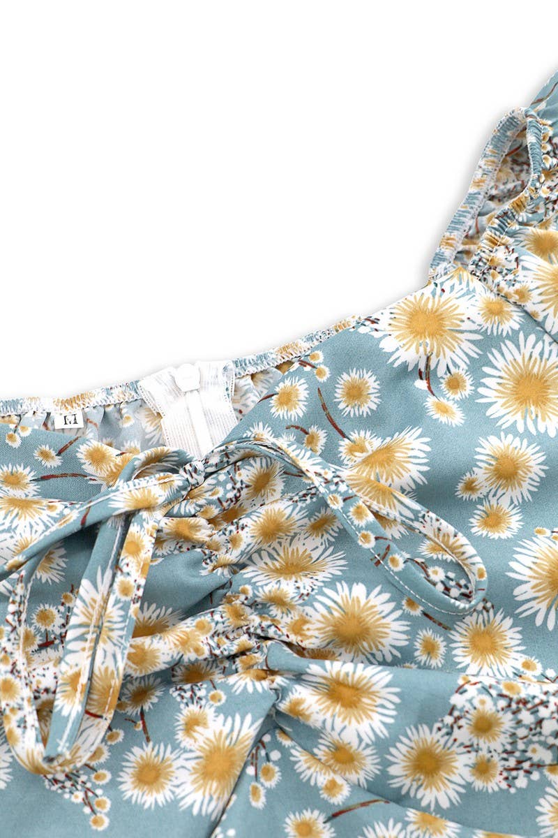 SEXY FLORAL LANTERN SLEEVE MINI DRESS