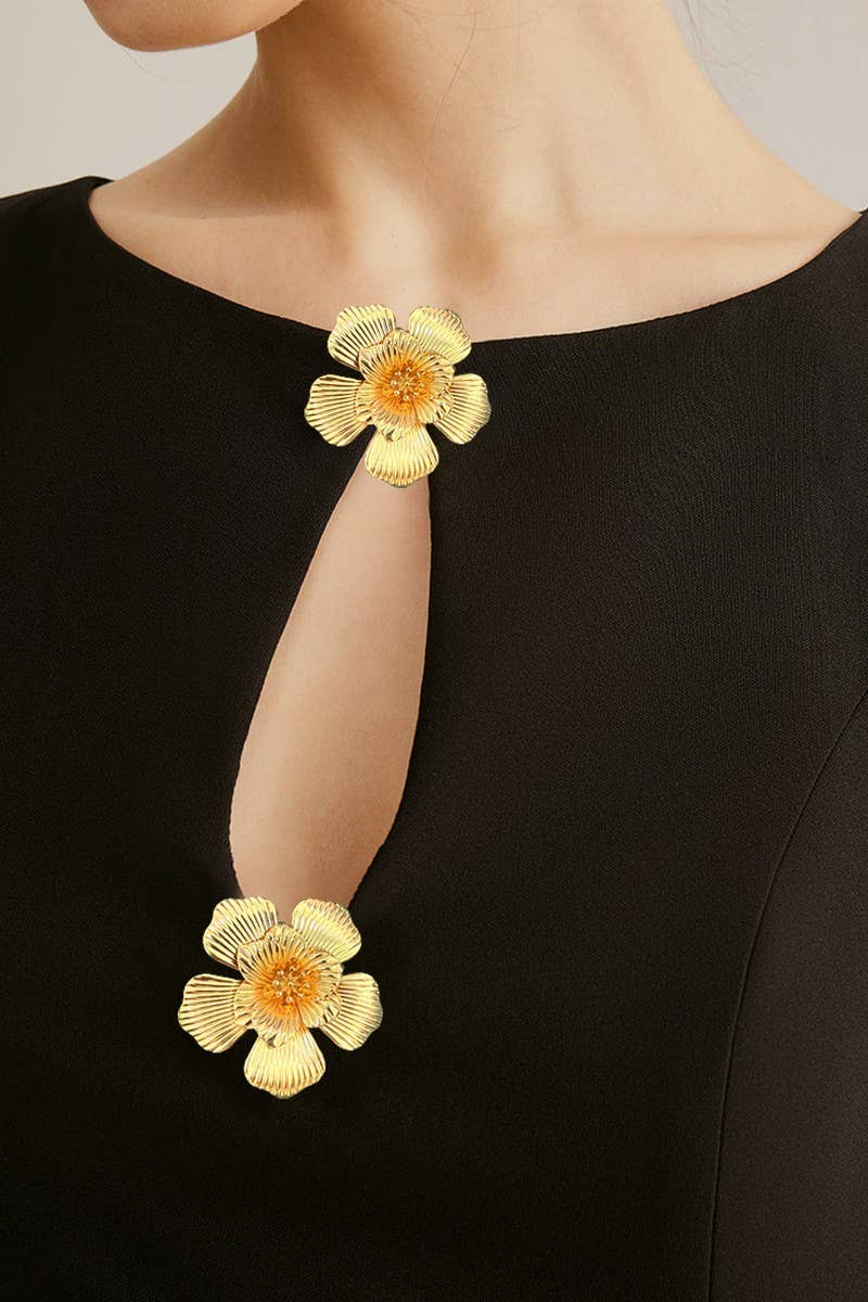 SLEEVELESS ROSE BUTTON WAIST PLEATED DRESS