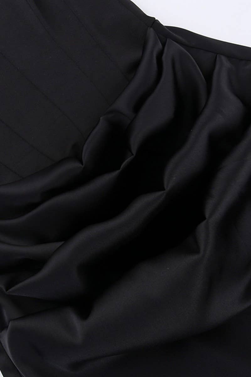 SOLID COLOR TUBE TOP PLEATED PATCHWORK DRESS