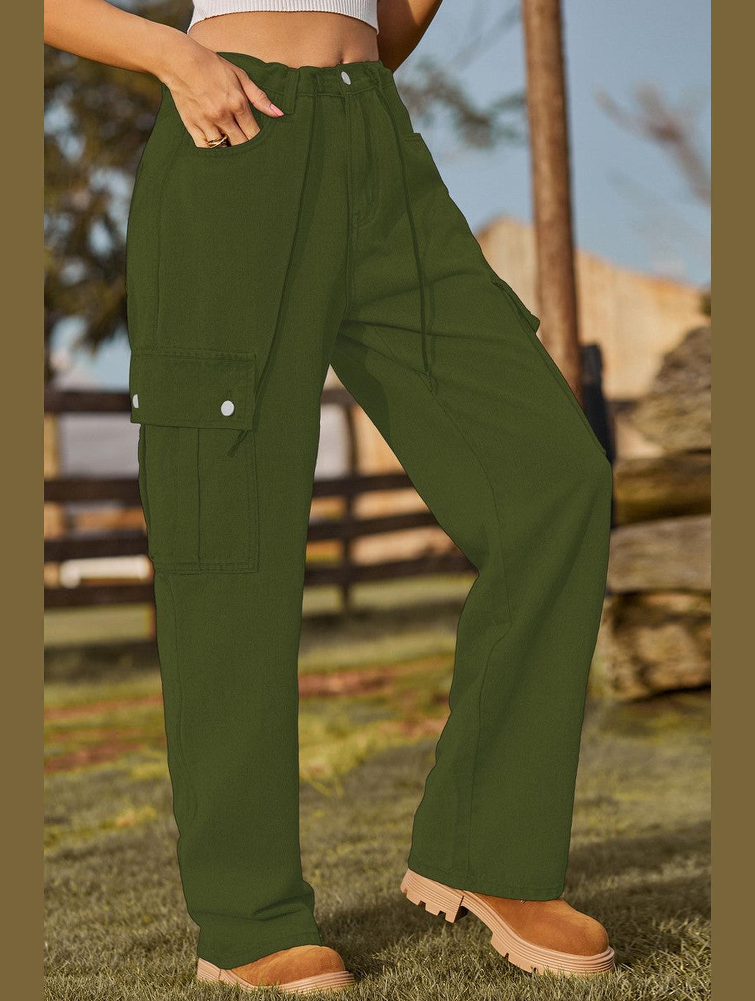 WOMEN ELASTIC DRAWSTRING WAIST CASUAL JEANS