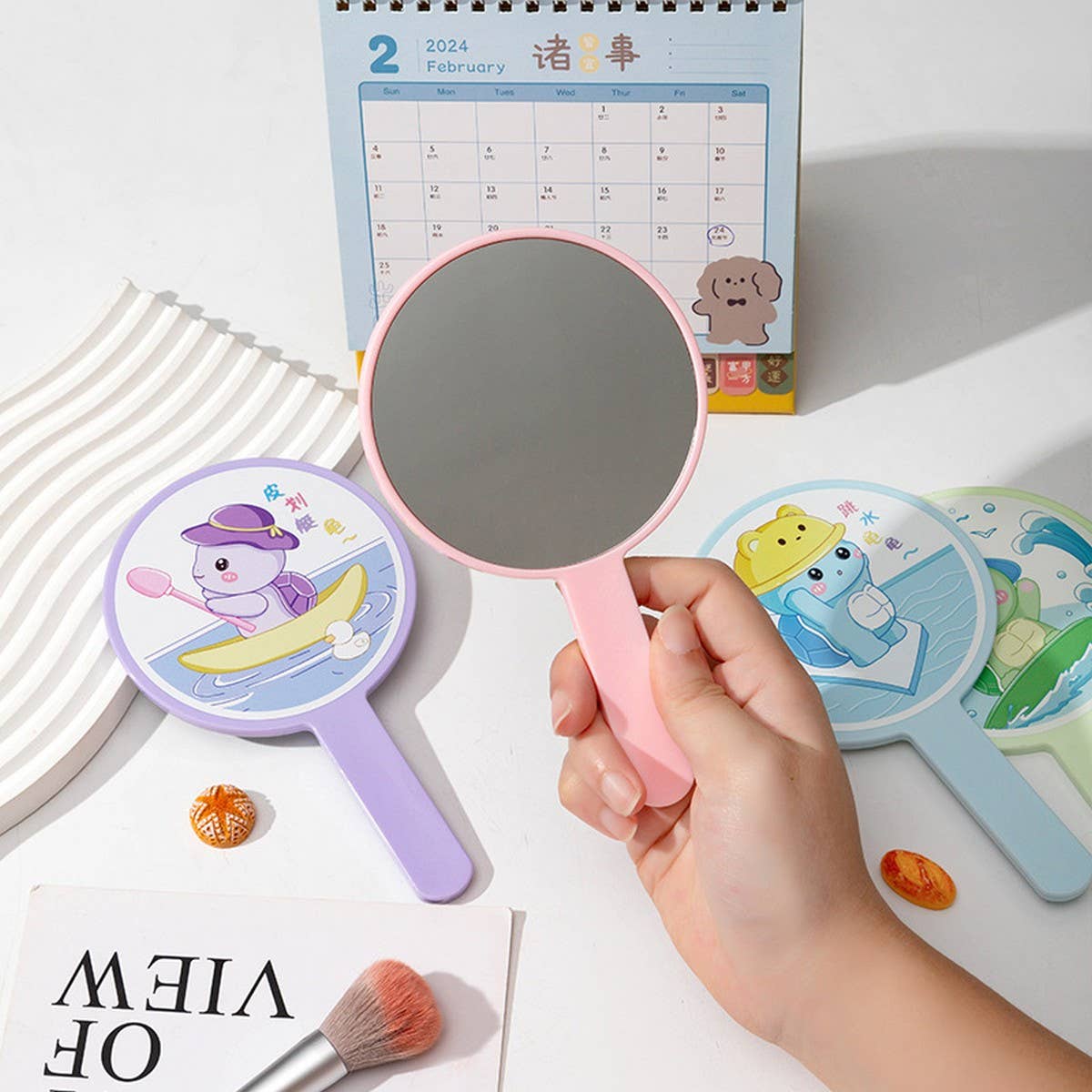 CARTOON CUTE HANDHELD ROUND HANDLE MAKEUP MIRROR 100% PLASTIC SIZES : OS