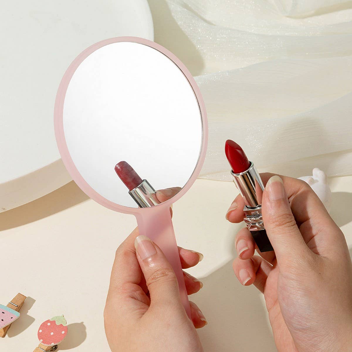 PORTABLE CARTOON PRINT GIRL HANDLE MIRROR 100% PLASTIC SIZES : OS 8.46"(21.5CM)*4.72"(12CM)*0.16"(0.4CM) MADE IN CHINA