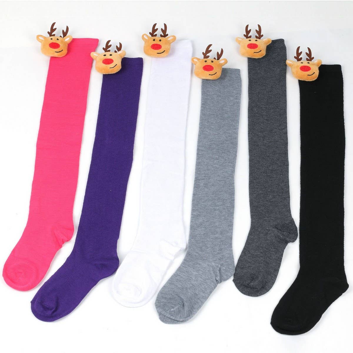Christmas Over The Knee Socks Elk Stripes Holiday Show