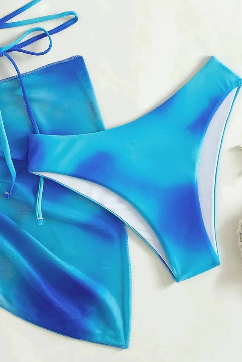 THREE-PIECE MESH SKIRT TIE-DYE BIKINI SWIMSUIT