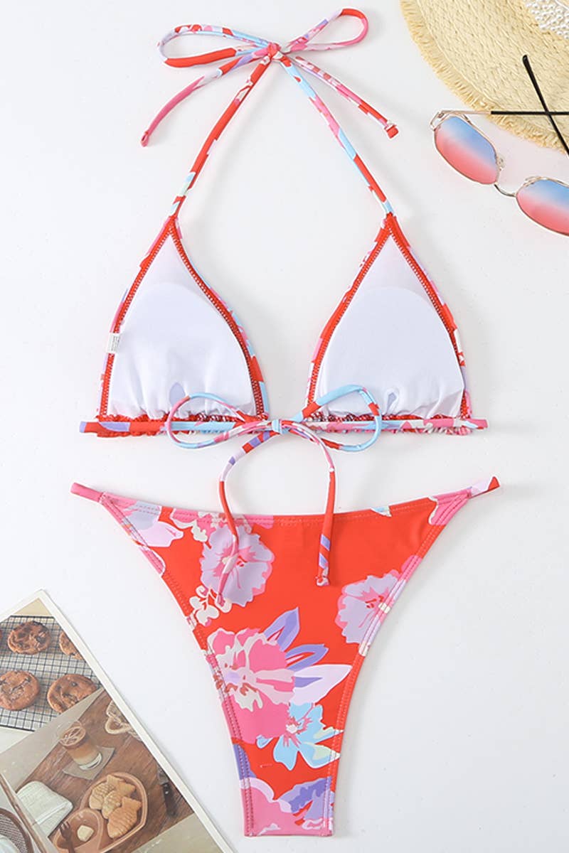 SEXY STRAP PRINTED SPLIT SWIMSUIT