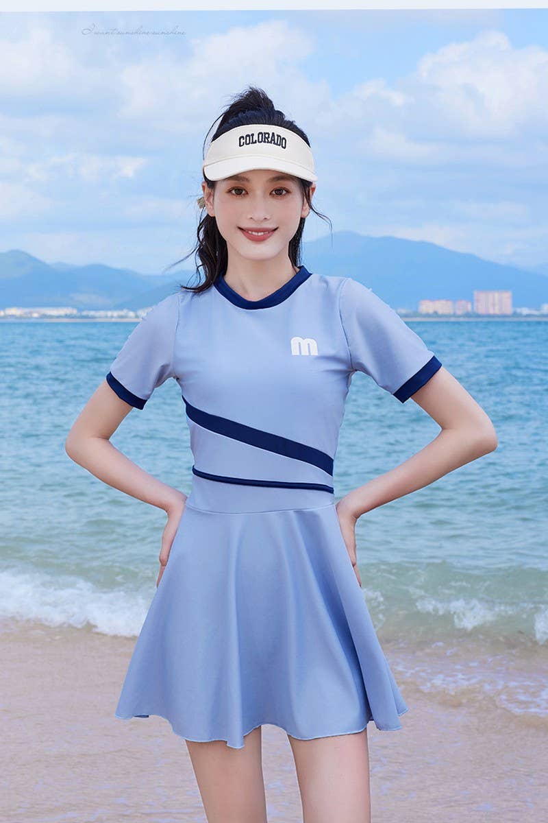 LETTERING PRINTED ONE-PIECE DRESS-STYLE SWIMSUIT