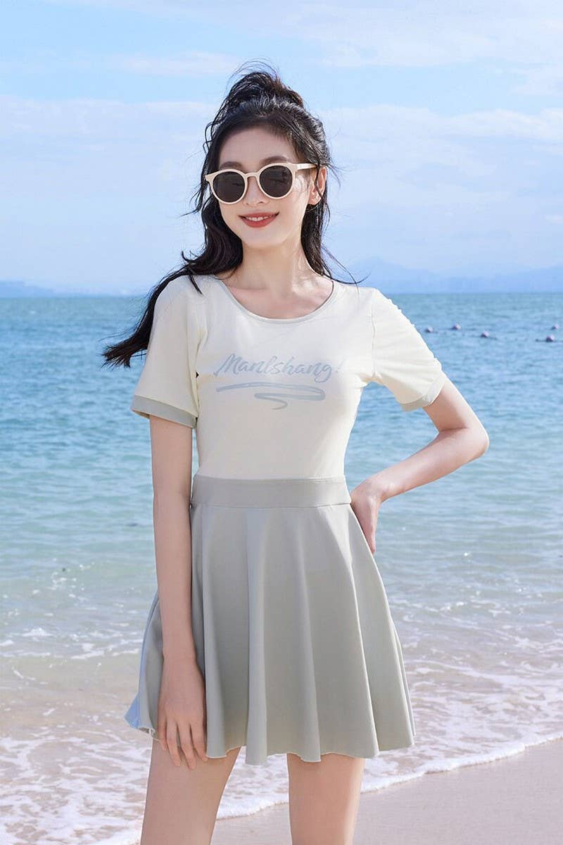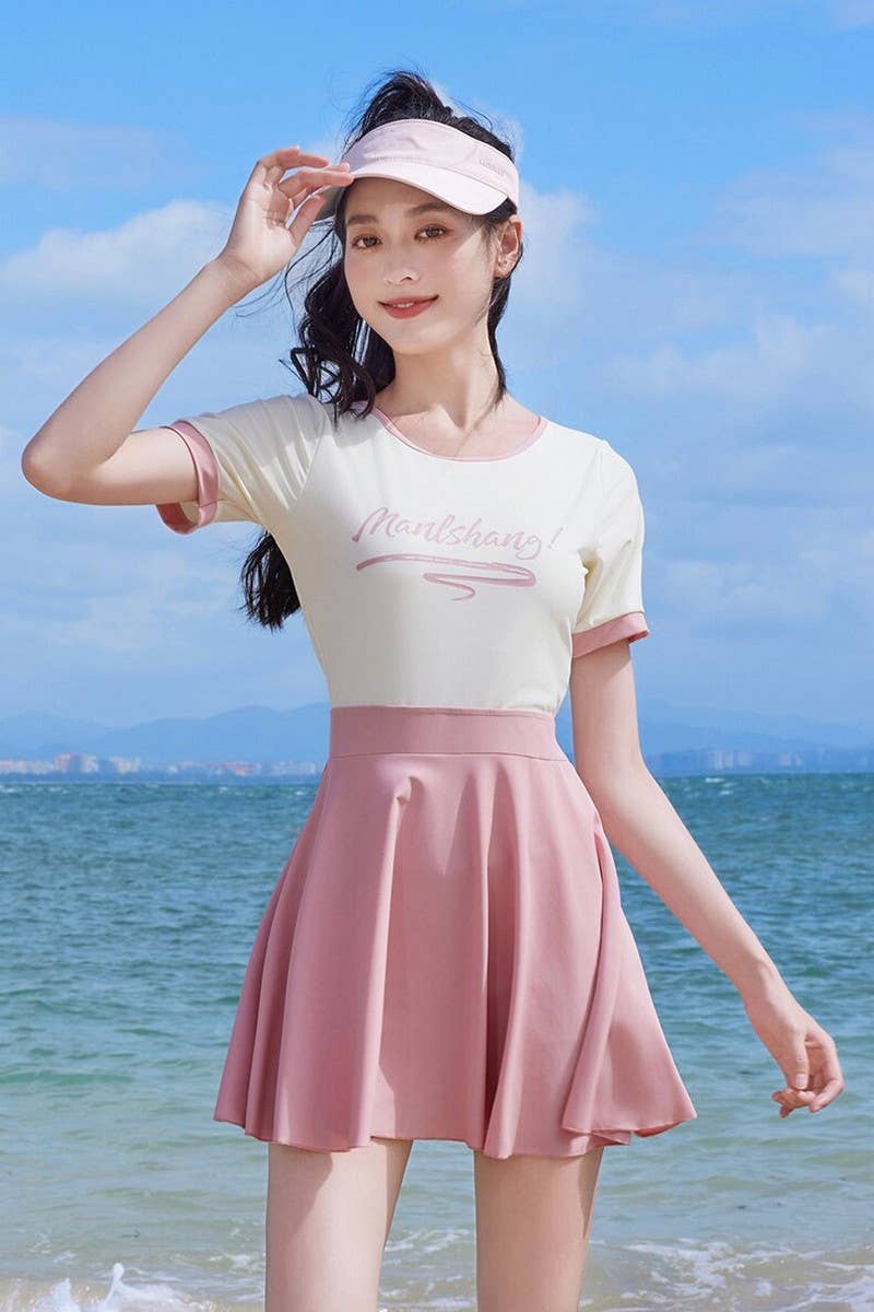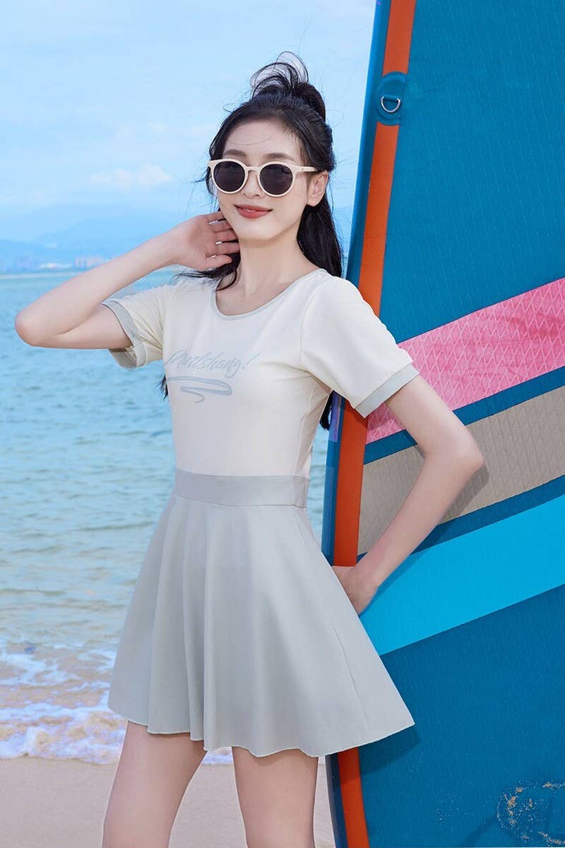 LETTERING PRINT SHORT SLEEVE ONE PIECE SWIMSUIT
