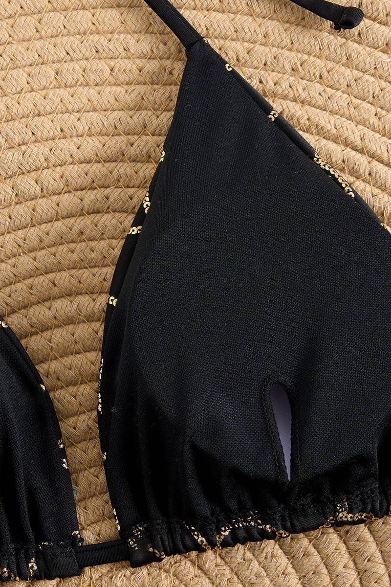 SEXY SHINY LACE-UP TWO-PIECE BIKINI SWIMSUIT