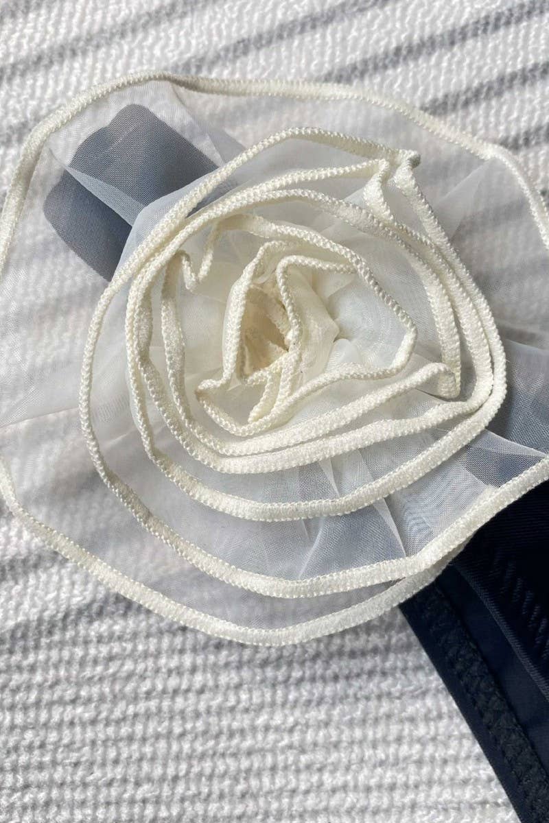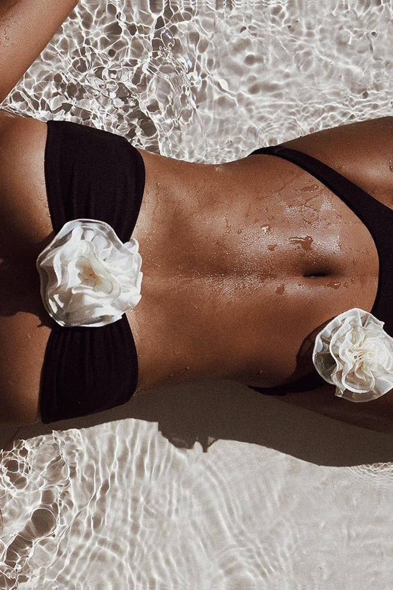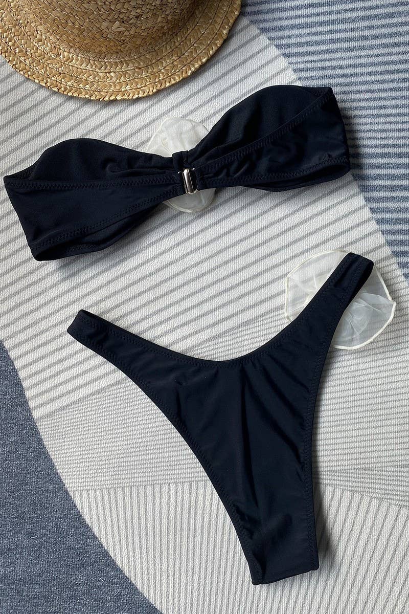 3D FLOWER BANDEAU TWO-PIECE SWIMSUIT
