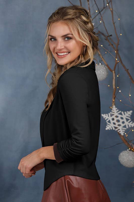 SHAWL COLLAR SHORT BLAZER WITH SHIRRING SLEEVE