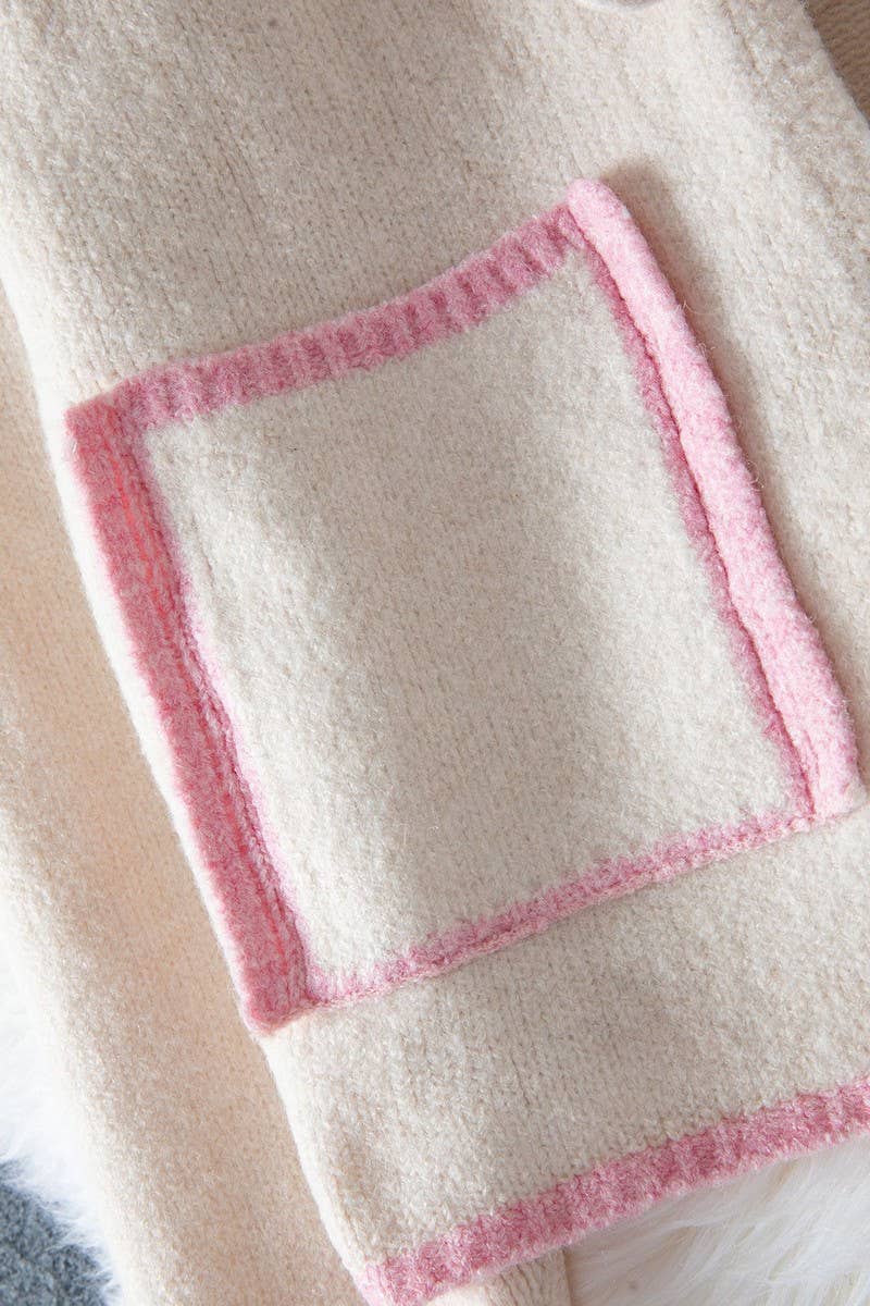 COLORBLOCK BOW TIE LOOSE KNIT CARDIGAN TOP