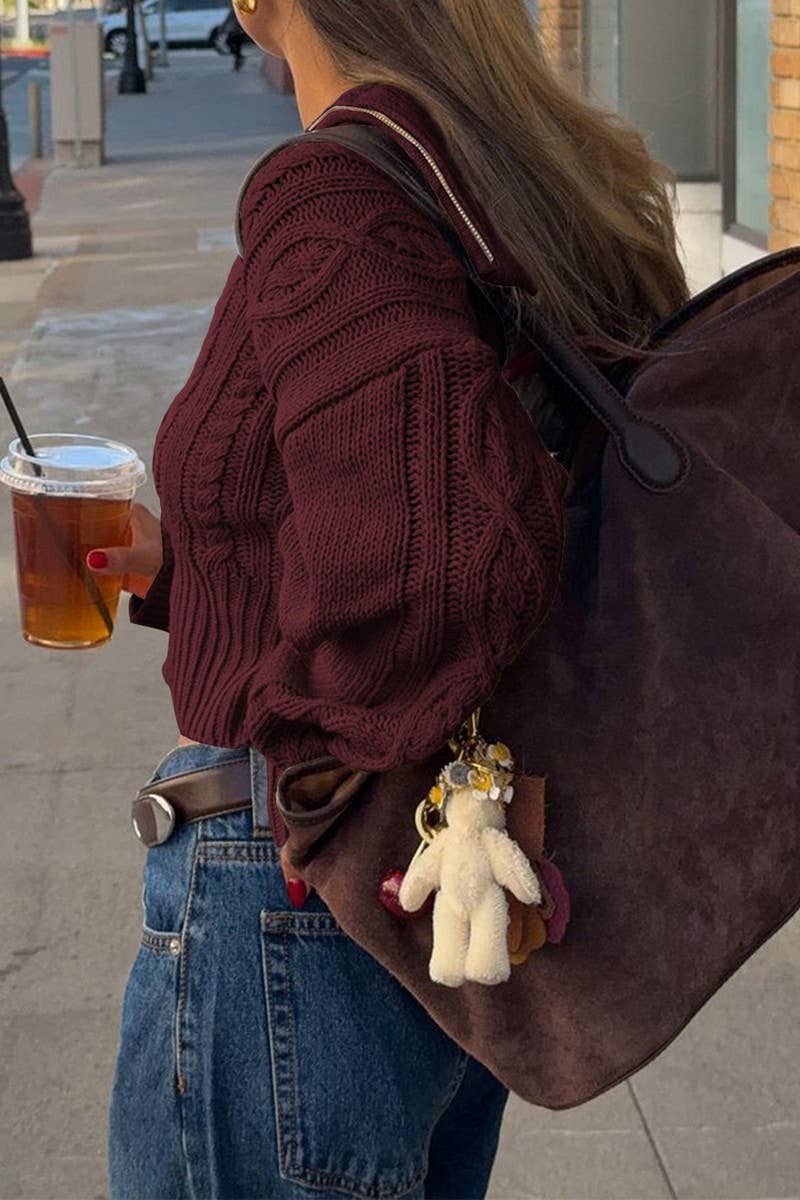SOLID COLOR LONG-SLEEVED ZIPPER KNITTED JACKET