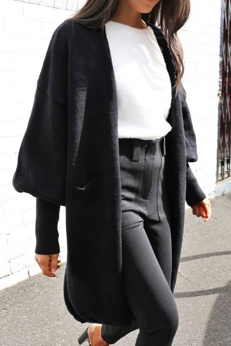 PUFF SLEEVE BUTTONLESS KNITTED CARDIGAN SWEATER