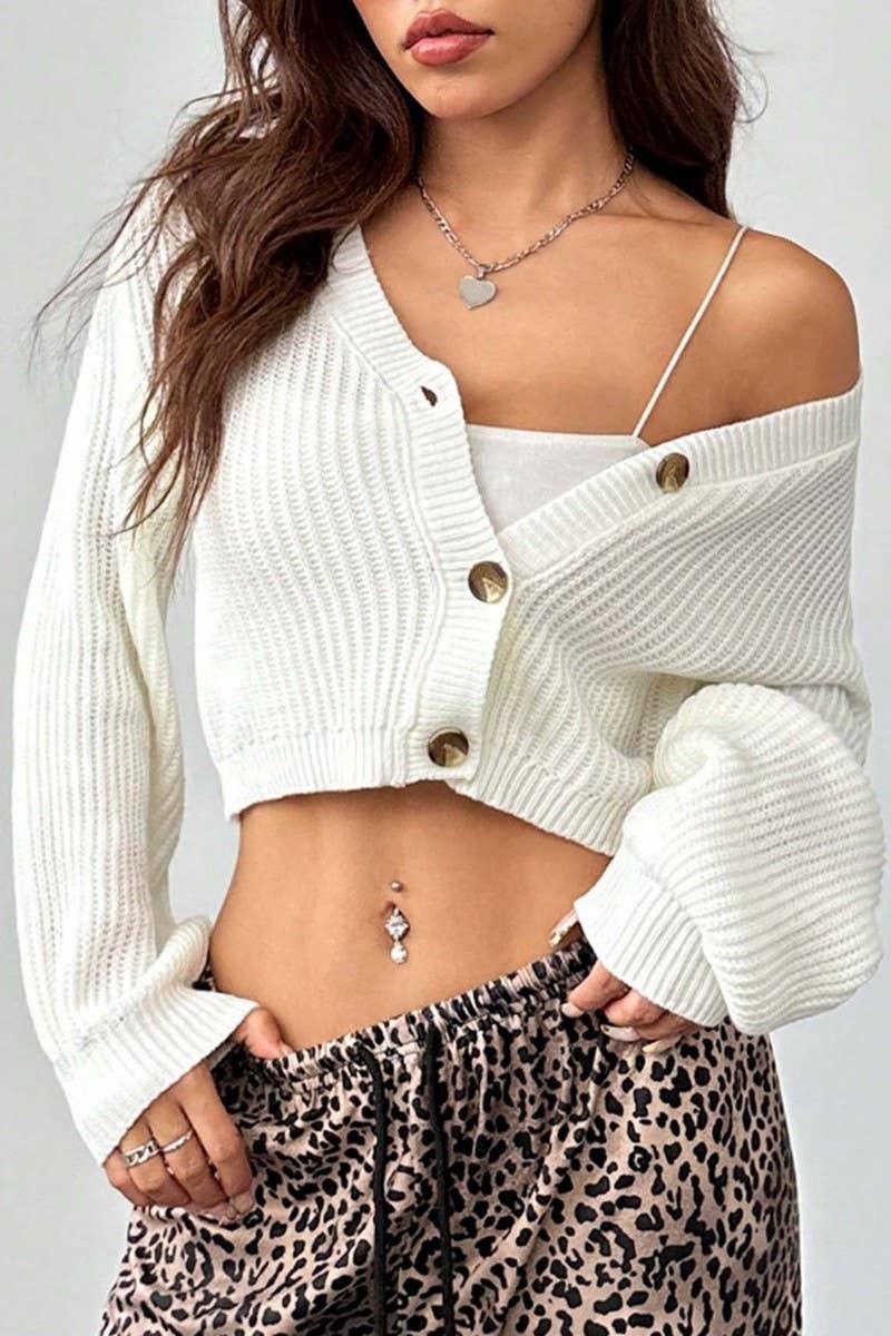 MINIMALIST CROPPED BUTTON UP KNIT CARDIGAN