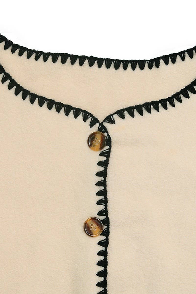 CASUAL CONTRAST-TRIMMED LOOSE CREW NECK JACKET