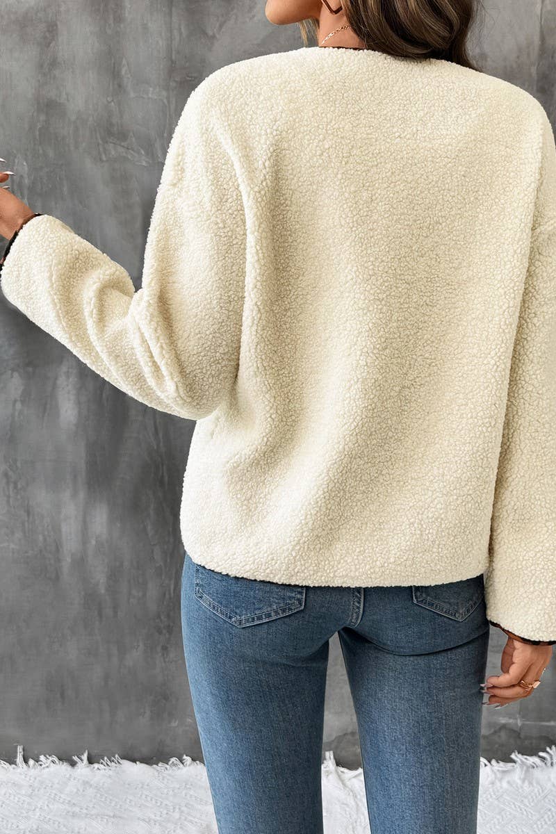 CASUAL LEOPARD PRINT CONTRAST CREW NECK JACKET