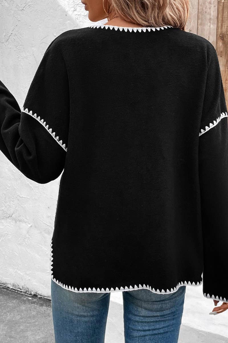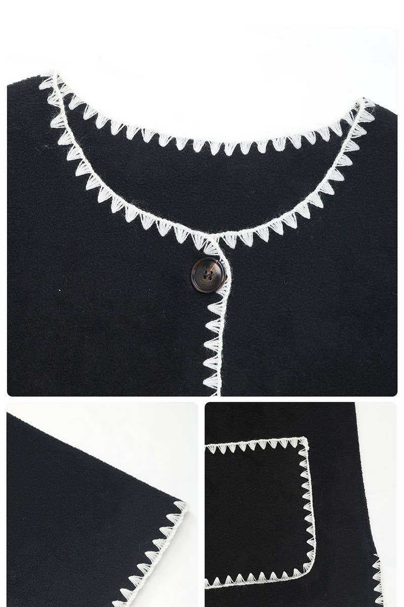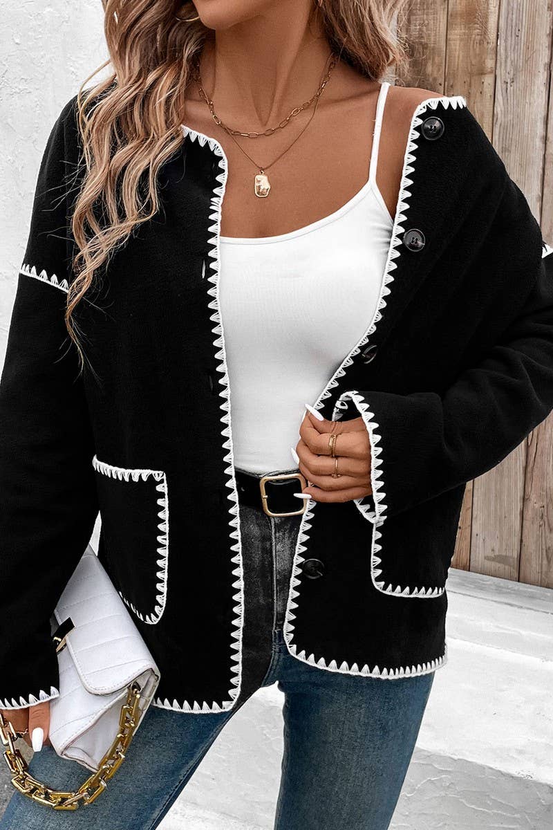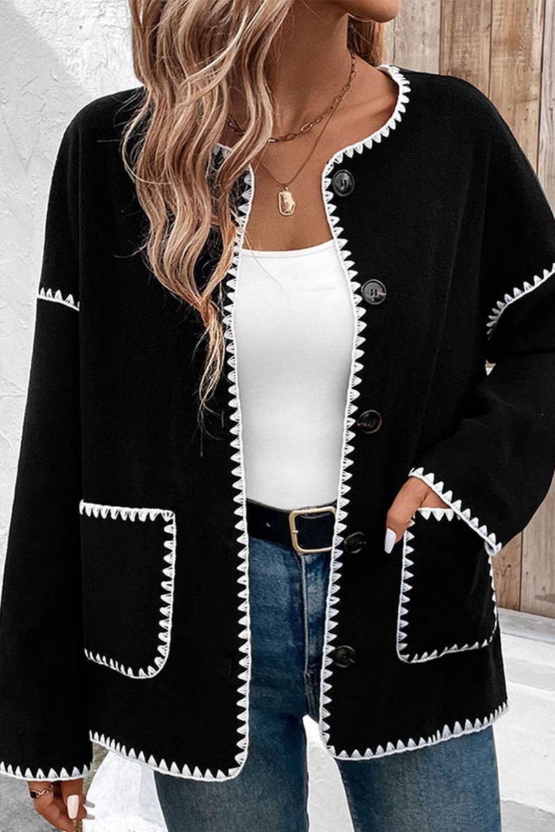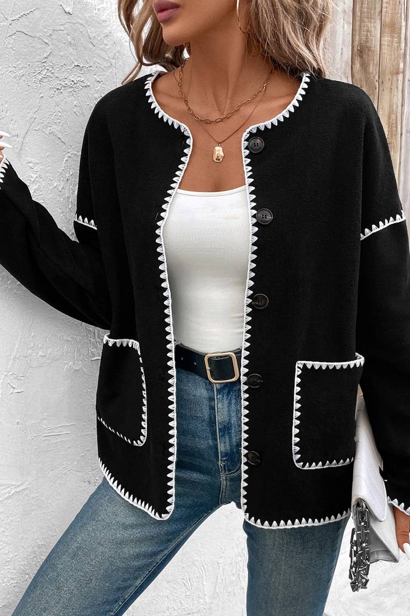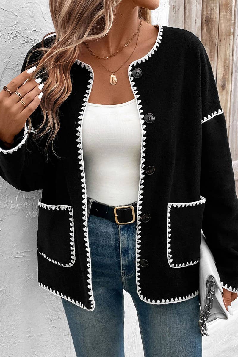 ROUND NECK LOOSE COLOR BLOCK POCKET JACKET