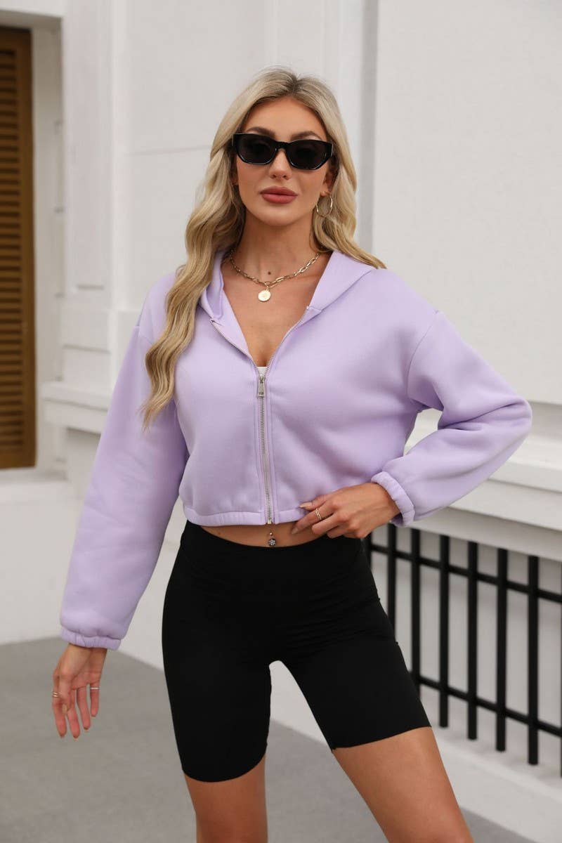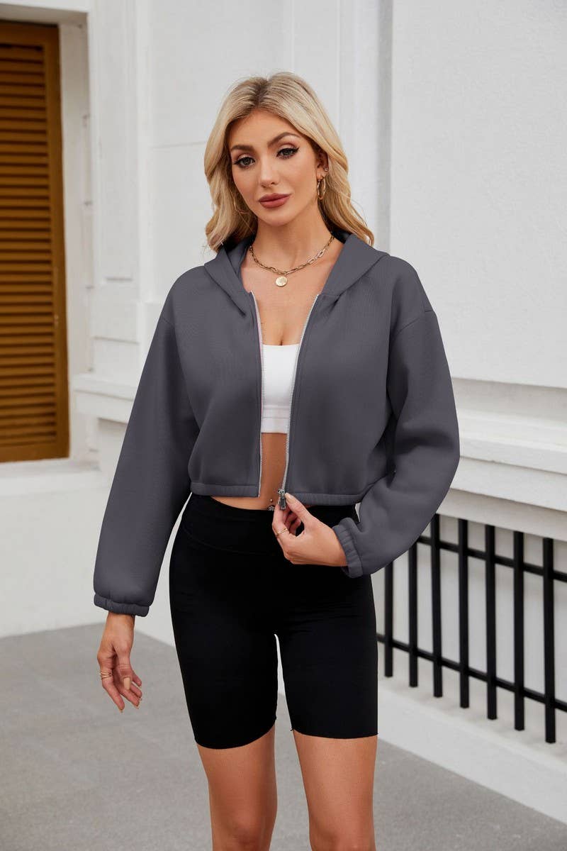 SOLID COLOR LONG SLEEVE ZIP-UP HOODIE COATS