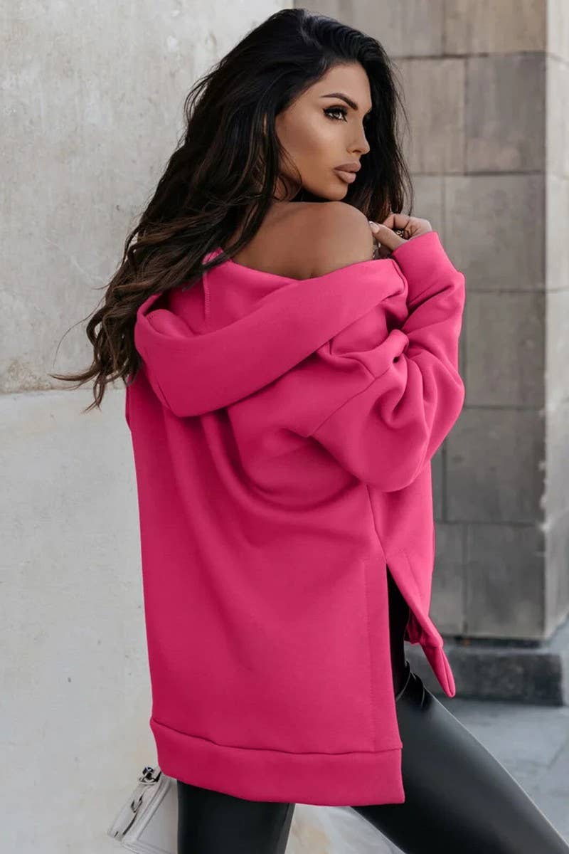 SOLID COLOR ZIPPER HOODED CARDIGAN SWEATSHIRT