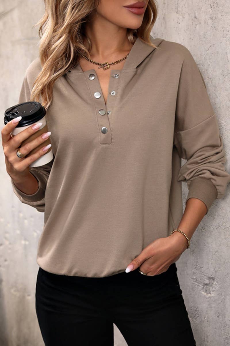 FALL BUTTONED HOODED LONG-SLEEVED HOODIE