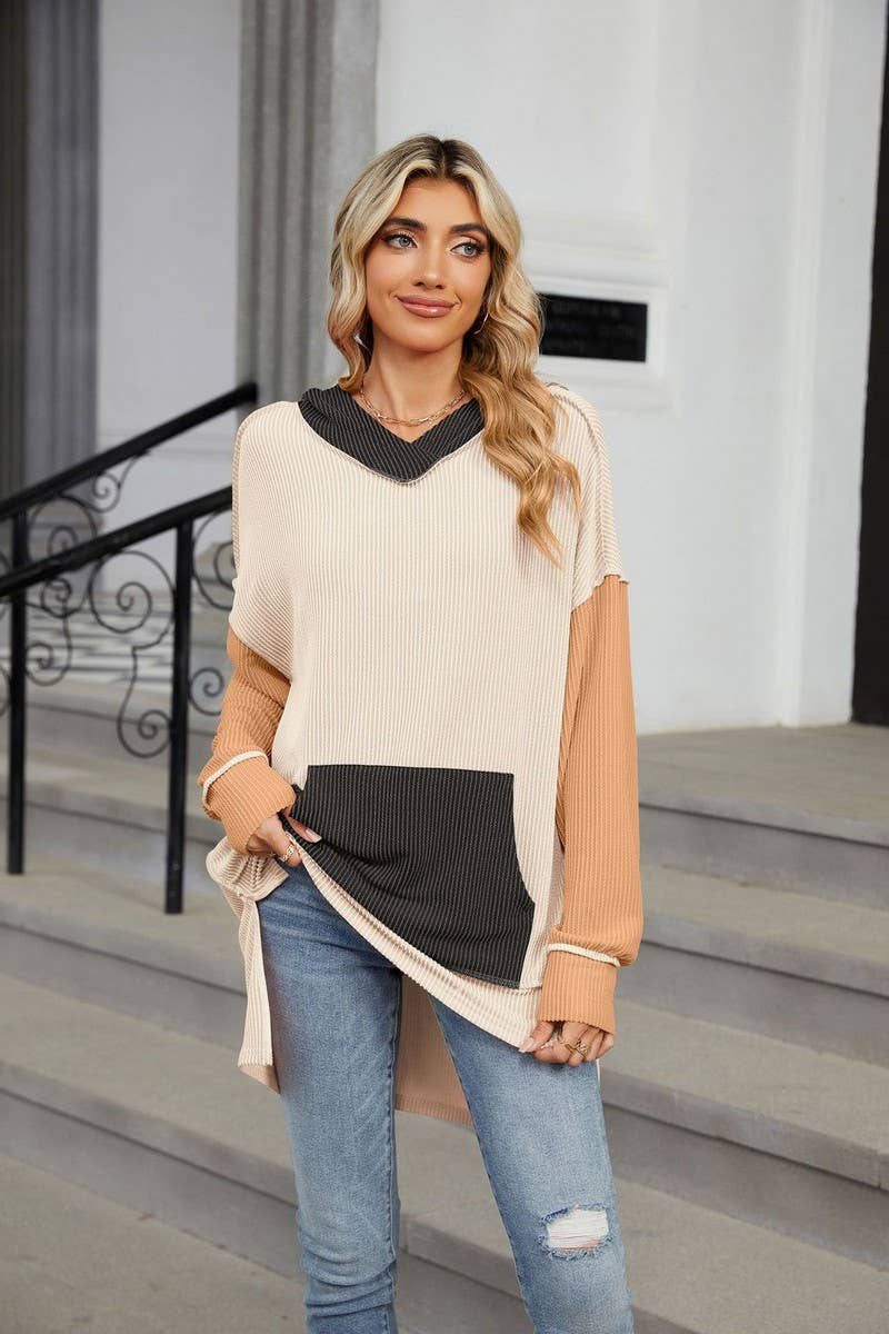 AUTUMN AND WINTER COLOR MATCHING IRREGULAR HOODIE