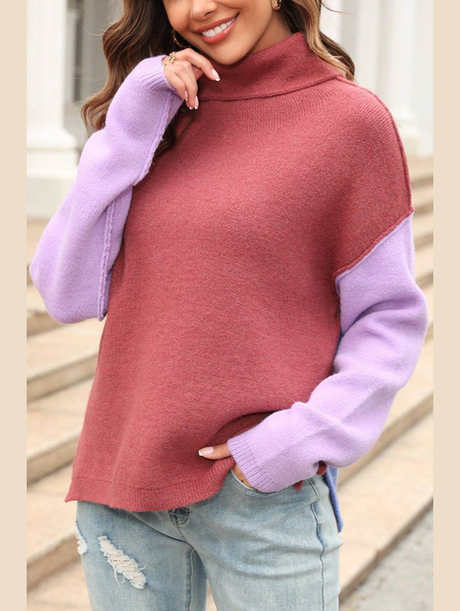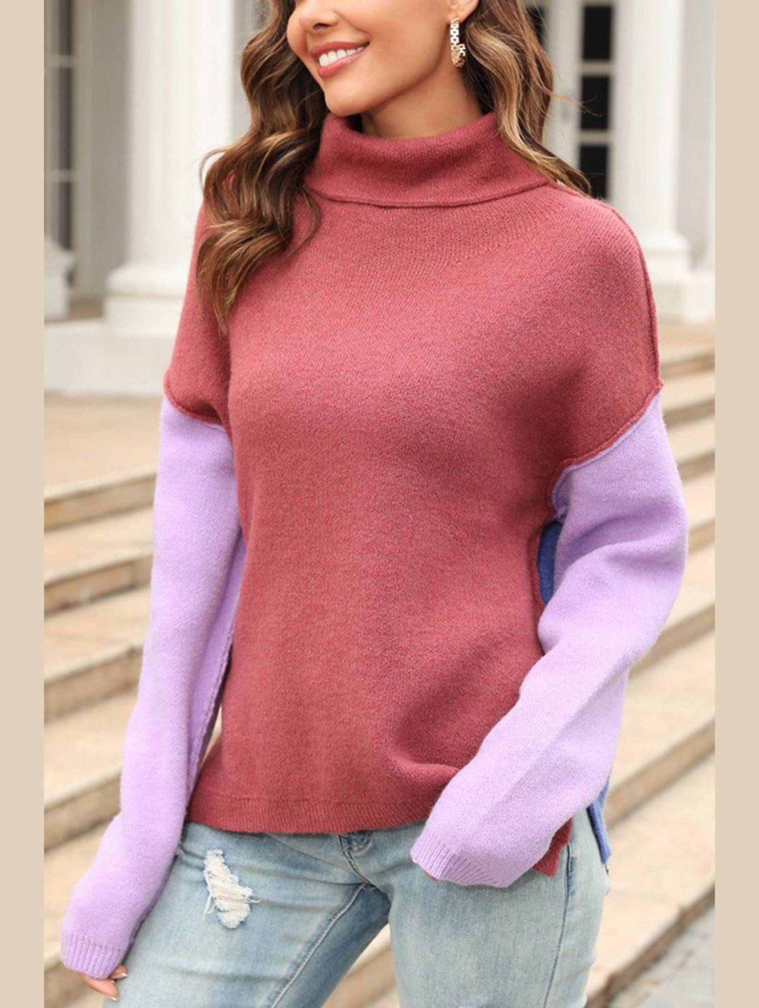 SPLICED FASHION HIGH NECK PULLOVER SWEATER, 100% ACRYLIC,, MADE IN CHINA, WOMEN BLAZER, BATHING SUITS, CROCHET CARDIGAN, CABLE KNIT SWEATER, WHOLESALE T SHIRTS, BEACH COVER UPS, RUFFLE DRESS, EYELET BLOUSE, PUFF SLEEVE TOP, FLORAL DRESS