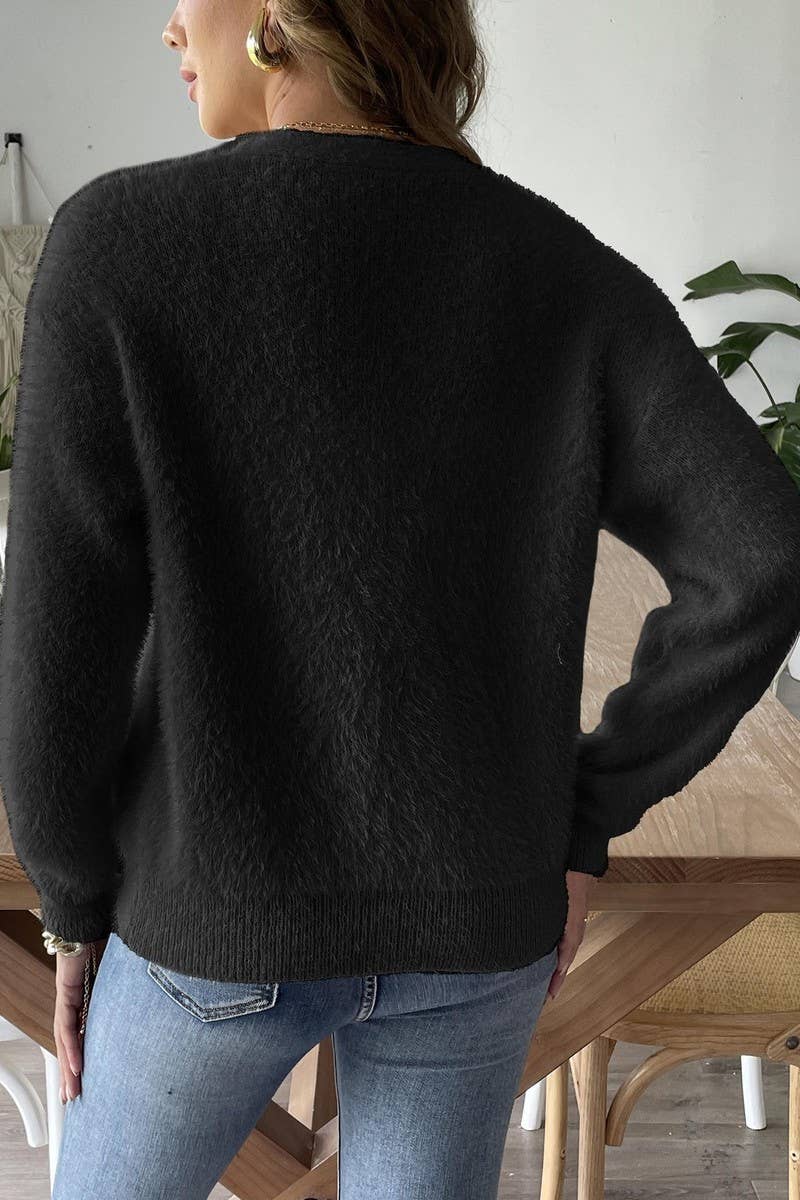 WOMEN FAUXPEARL BUTTON KNIT CARDIGAN