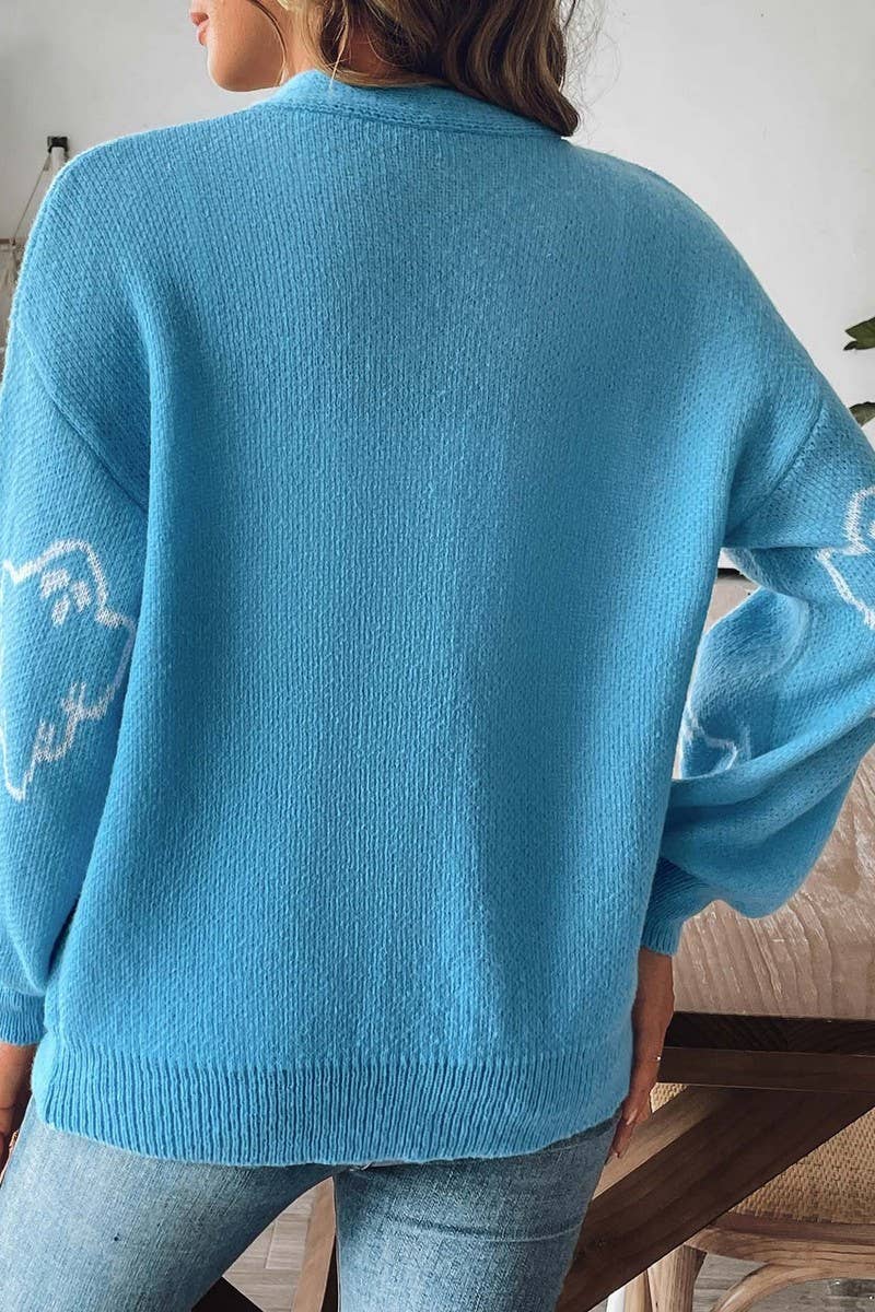 WOMEN HALLOWEEN KNIT CARDIGAN WITH CARTOON PATTERN