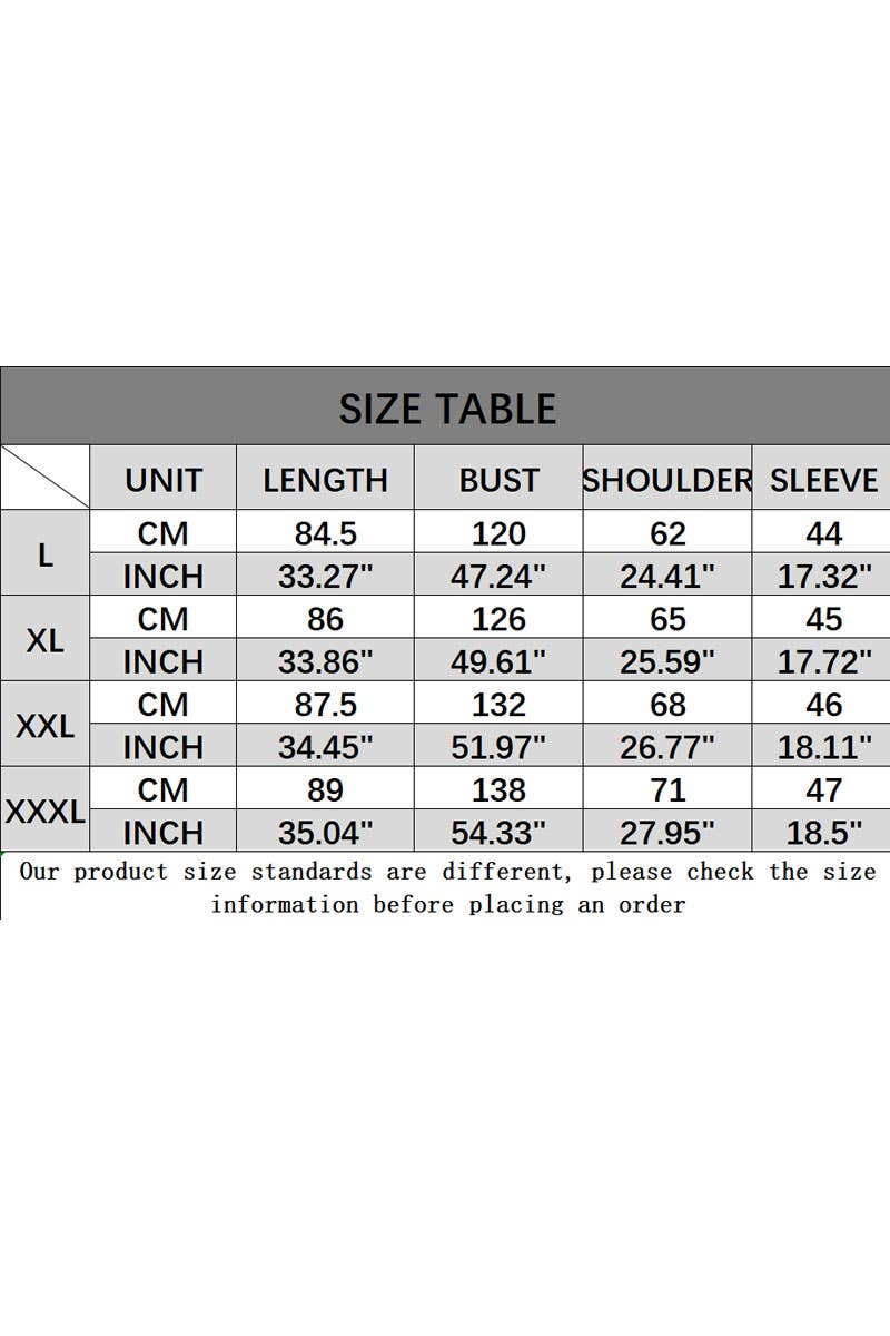 SIZES : L,XL,XXL,XXXL