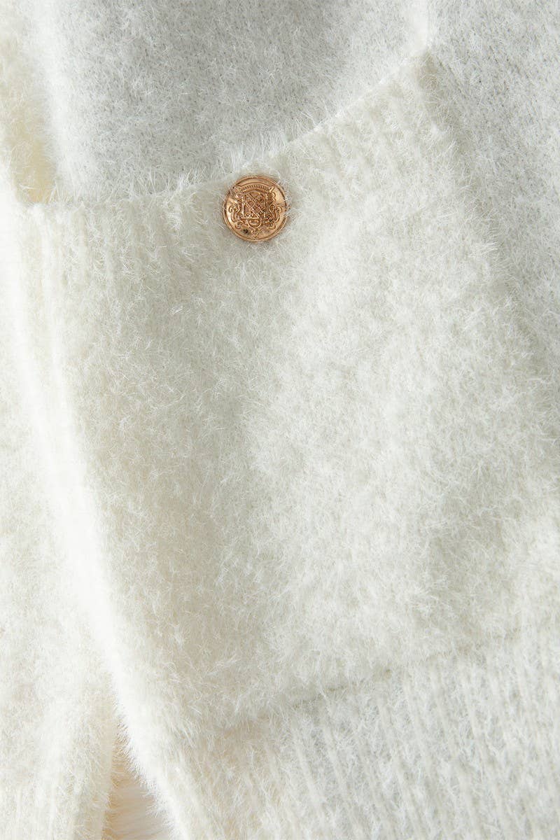 ASYMMETRICAL BUTTON COLORBLOCK KNIT SWEATER