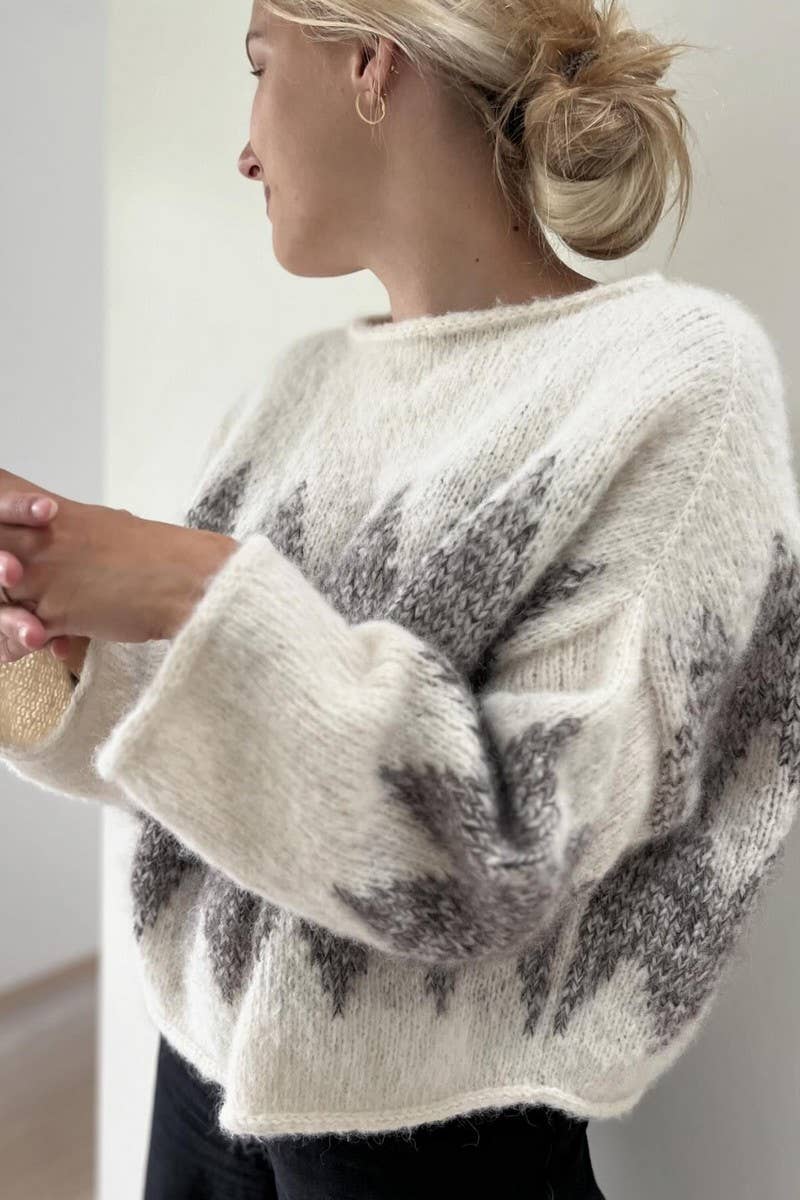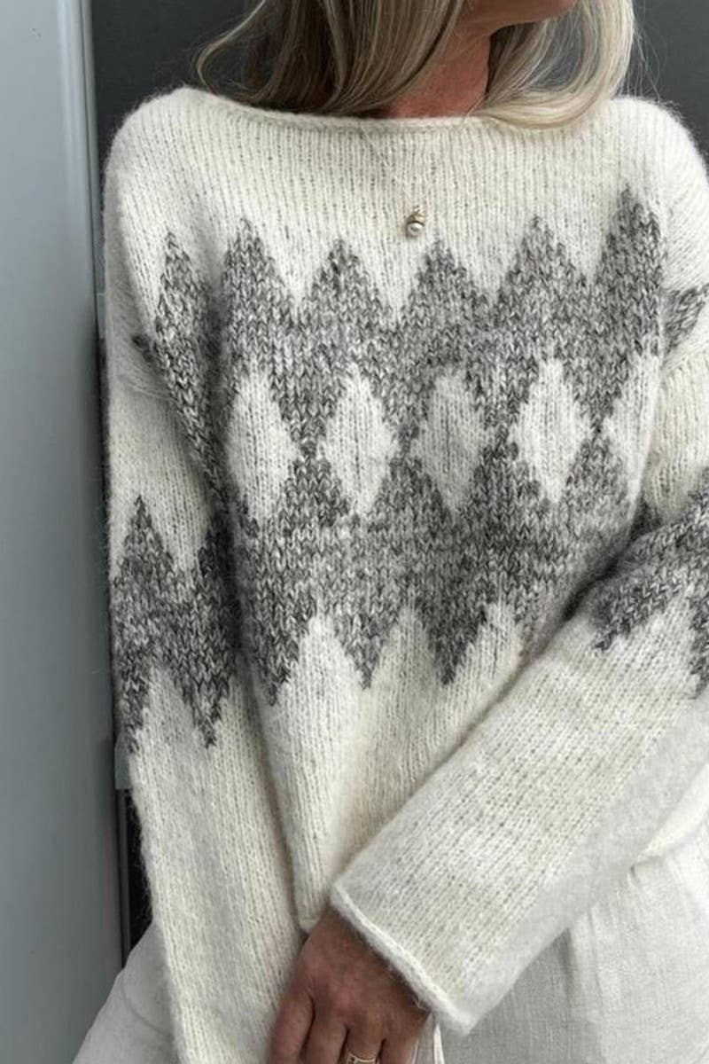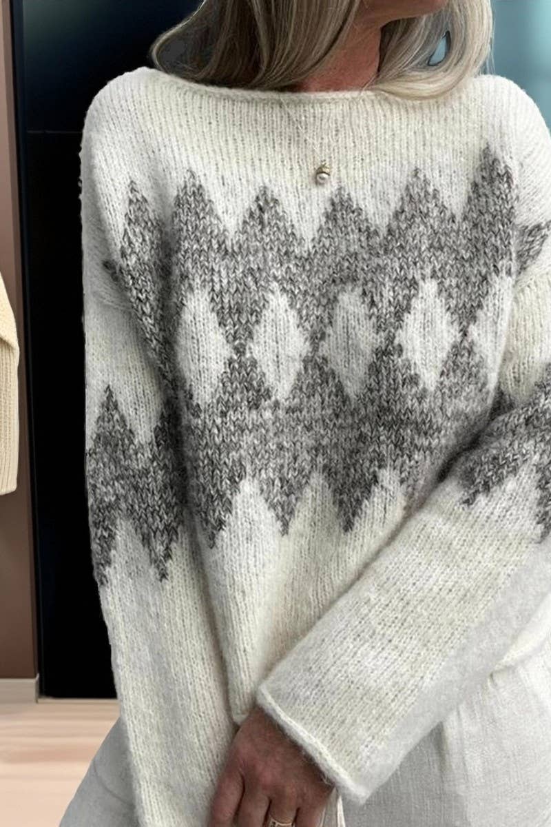 OFF SHOULDER COLORBLOCK ARGYLE KNIT SWEATER