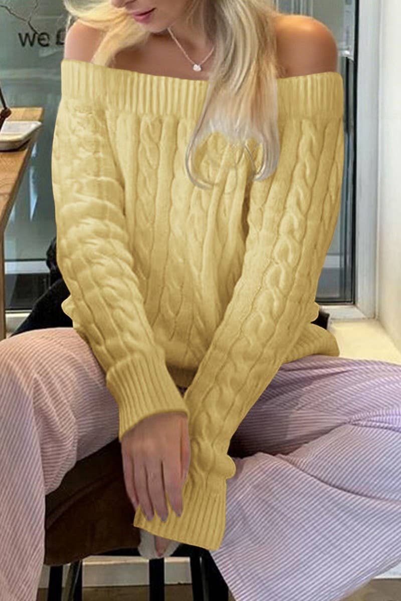 SOLID COLOR CASUAL OFF-SHOULDER KNITTED TOP