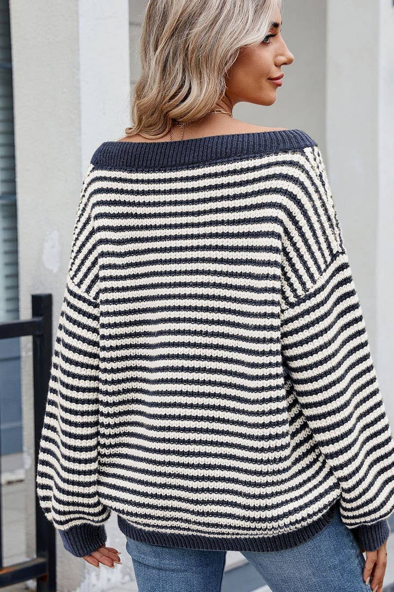 OFF SHOULDER COLORBLOCK STRIPE KNIT TOP