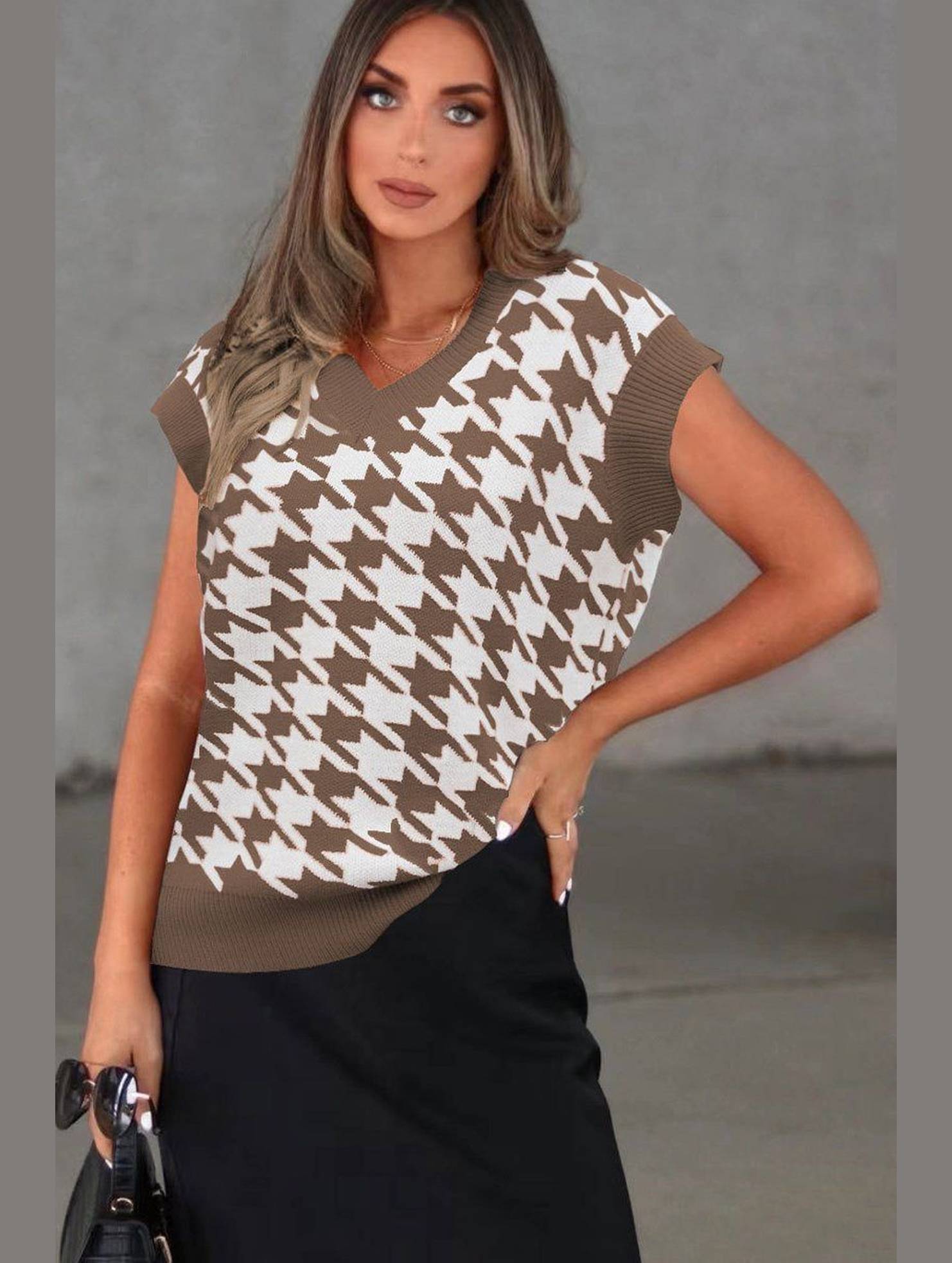 HOUNDSTOOTH LOOSE SLEEVELESS VEST SWEATER