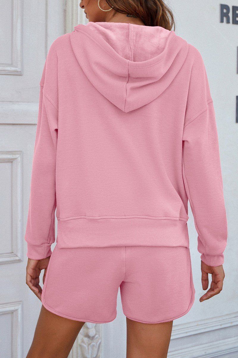 WOMEN HOODED PULLOVER AND SHORT HOMEWEAR SET