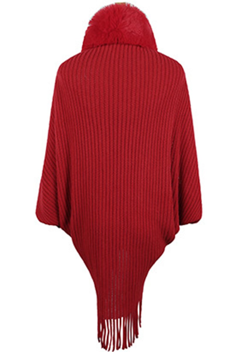 WOMEN WINTER FURRY TASSEL DETAILED SHAWL WRAP