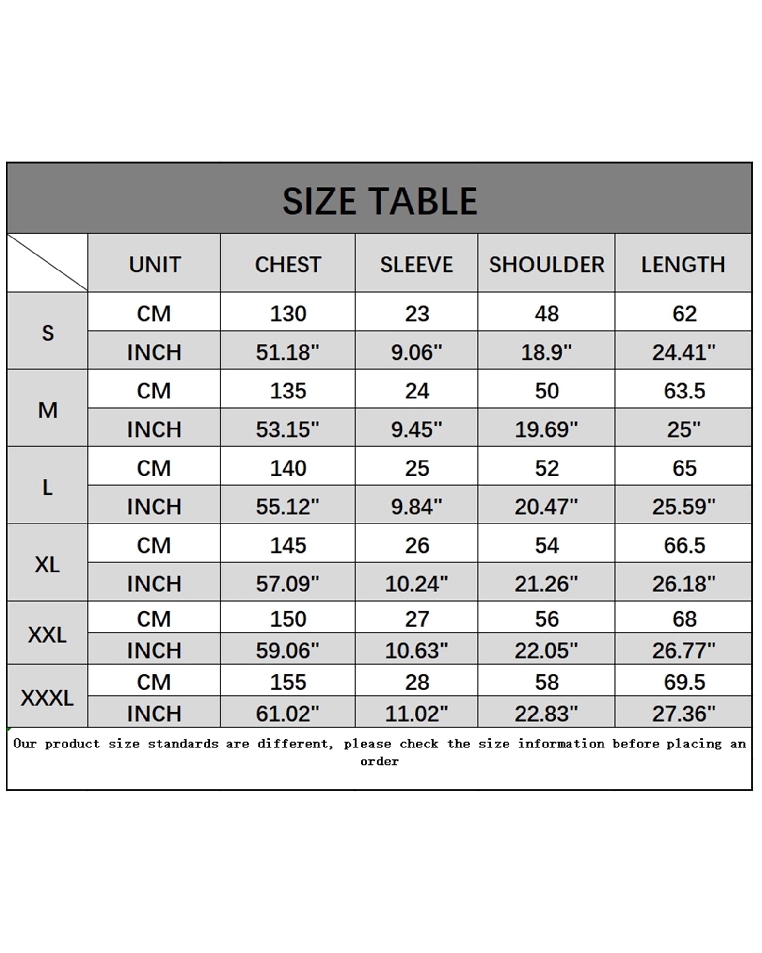 SIZE:S,M,L,XL,XXL,XXXL