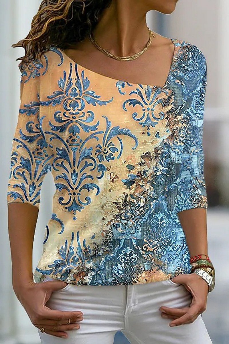 WOMEN IRREGULAR NECK LONG SLEEVED T SHIRT