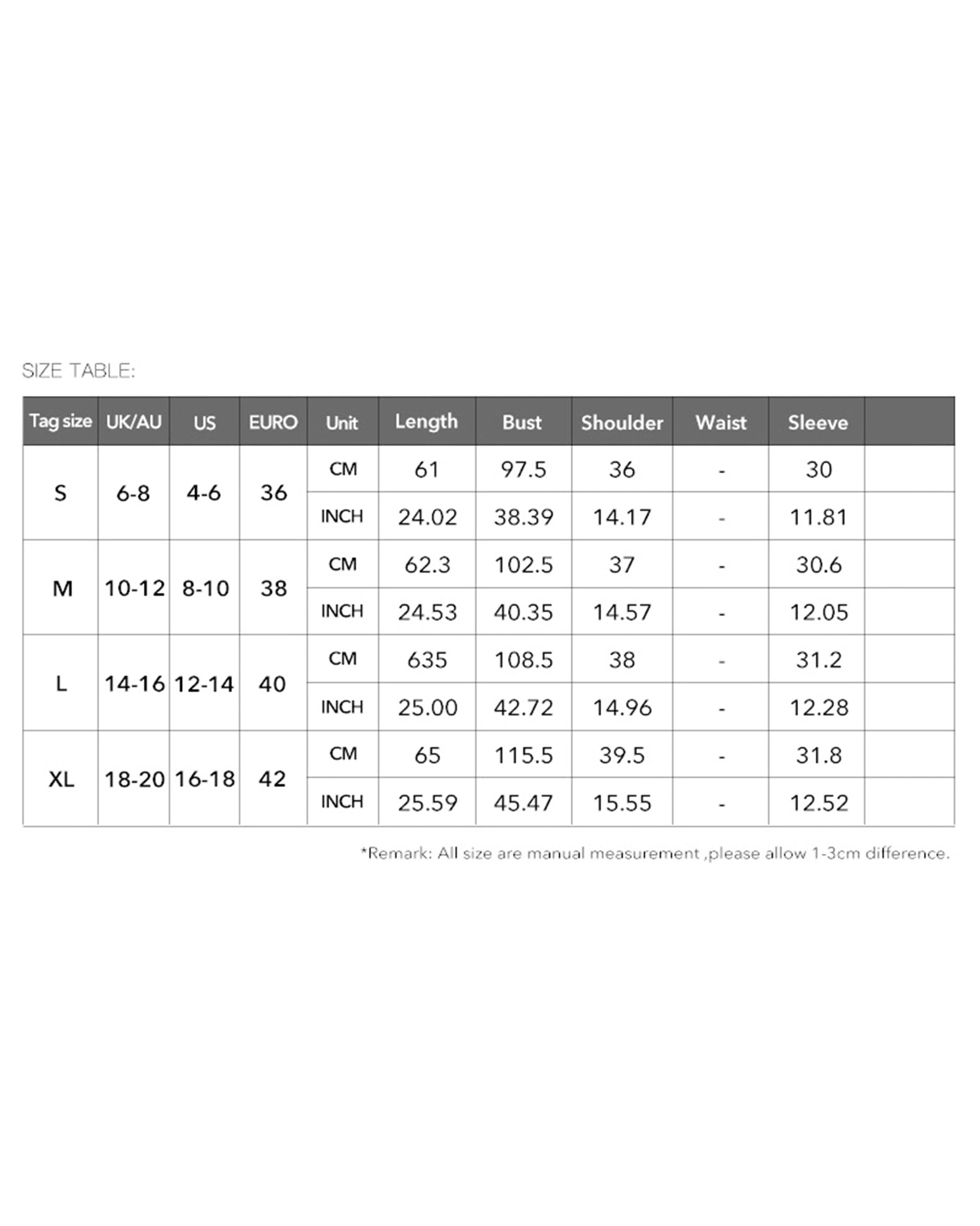 Size Chart (CM):