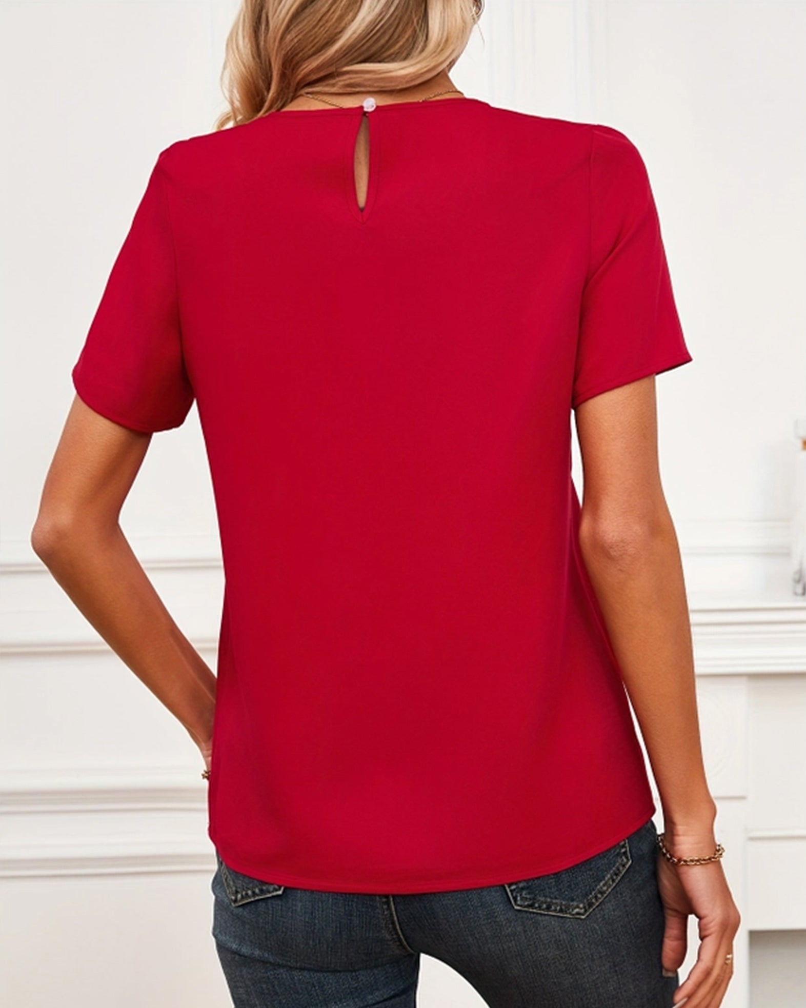 Pair this top with high-waisted jeans and ankle boots for a chic everyday outfit, or tuck it into a midi skirt with heels for an elegant evening look.