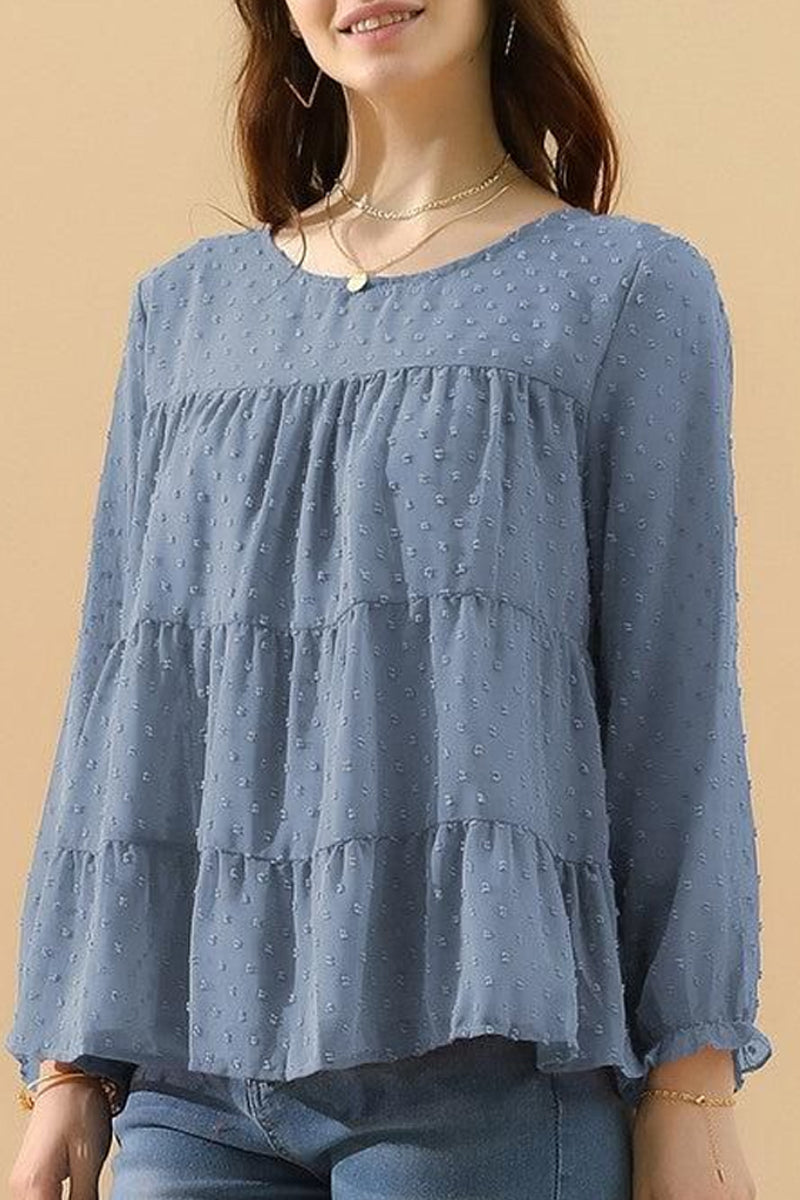 SMALL DOT PATTERN LACED RUFFLE TUNIC TOP – WHOLESALETRENDHUB