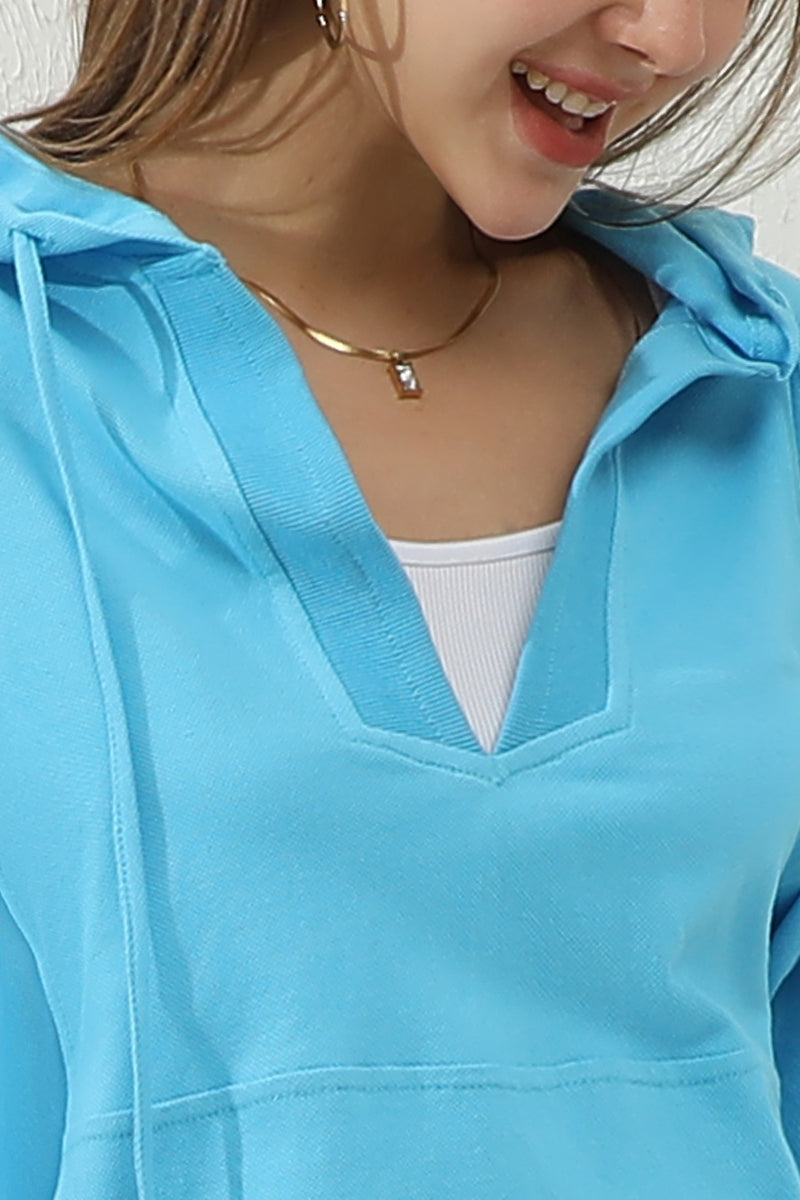DEEP V NECK CASAUL HOODIE SHEATH TUNIC TOP 100% COTTON Size S - M - L -XL - 1X - 2X - 3X Made in China