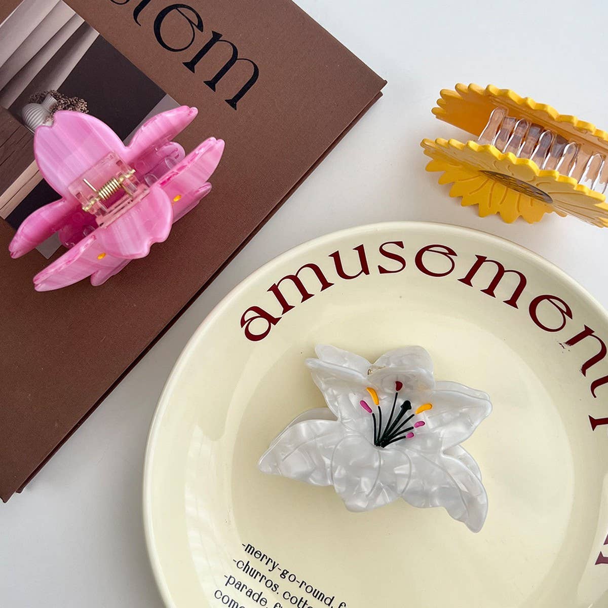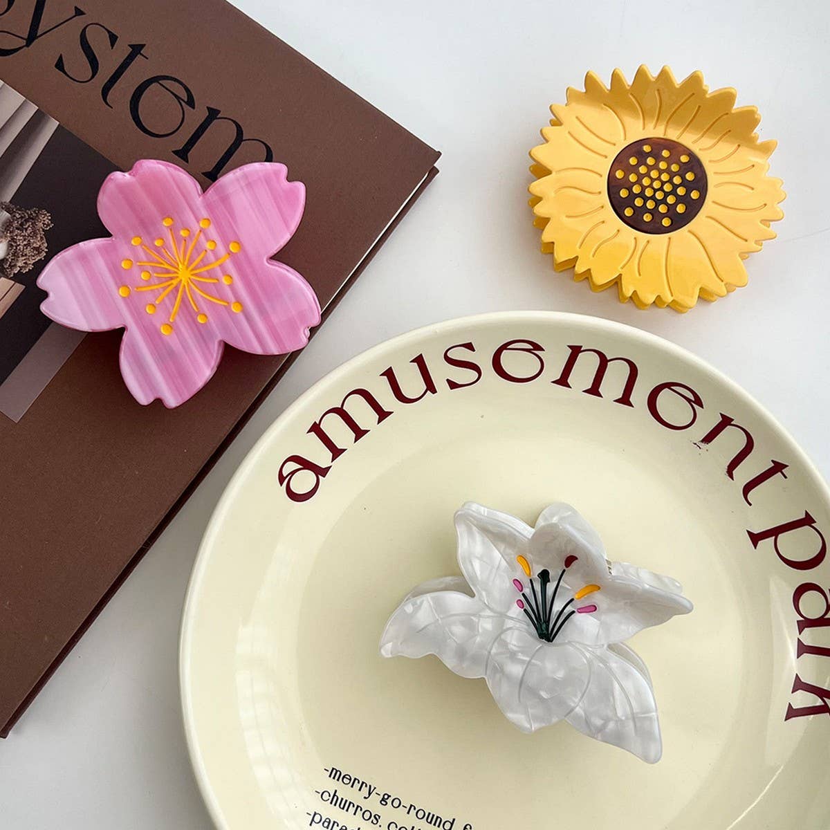 ? Size: Approx. 8 cm x 6.5 cm / 3.15 in x 2.56 in\n? Material: Acetate\n? Design Elements: Floral motifs including cherry blossoms, daisies, and lilies ???????\n? Style: Soft and elegant, perfect for adding a romantic, nature-inspired charm to your hairstyle\n\n#acetatehairclip #flowerclip #cherryblossomclip #daisyclip #lilyclip #romanticaccessory #8cmclip\nTypes of products that will be on the shelves during this period:\nHair claw clip set, large hair claw clip, flower hair claw, boho claw clip, pearl hair claw, modern hair claw, rhinestone claw clip, colorful hair claw, hair clips claw, hair clips for women, wholesale hair clips, bulk hair clips, hair clip display, clips for hats, clips for kids, mini hair clips, trendy hair clips, fashion hair claws, strong hold hair clip, acrylic claw clip.