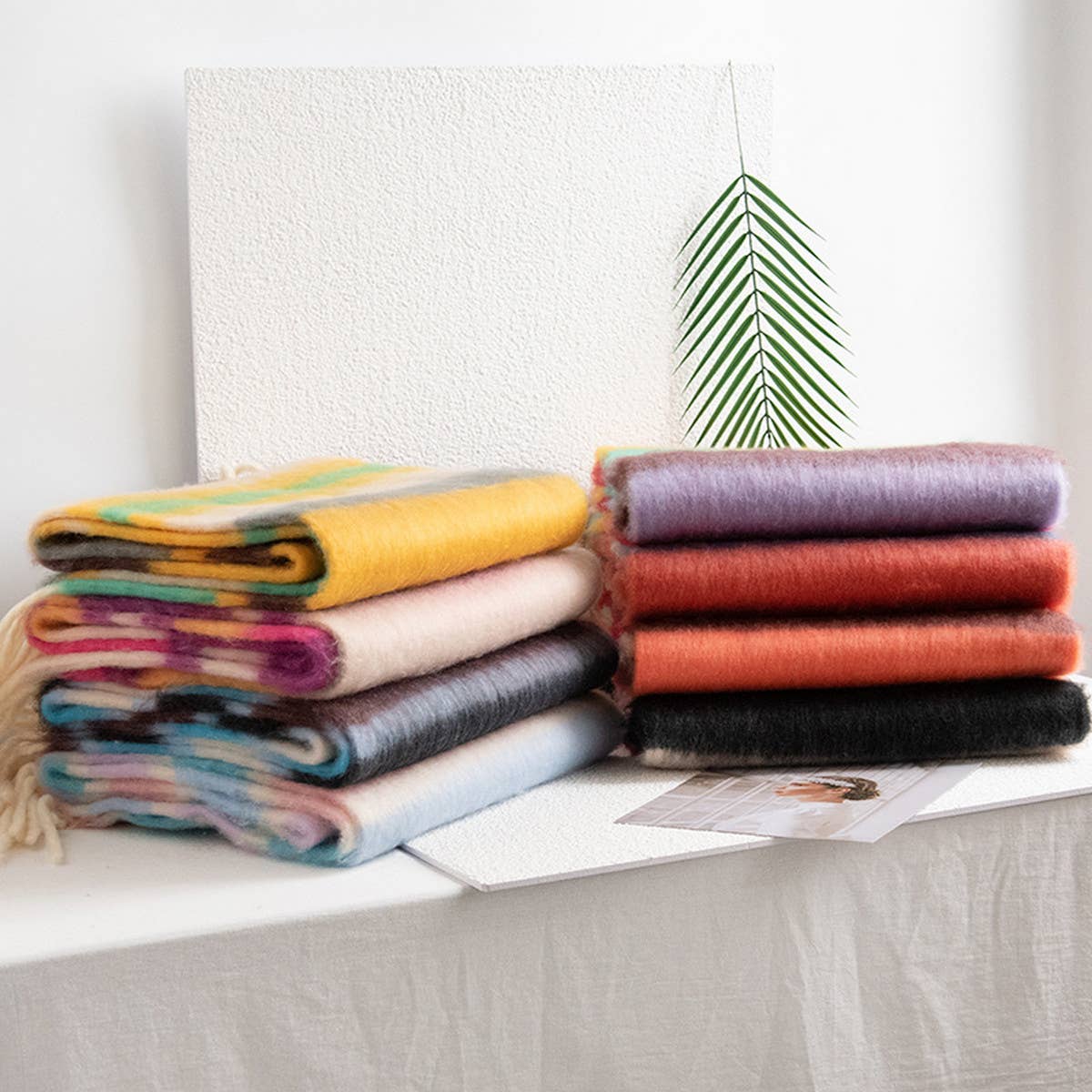 ? Product Name: Plaid Fringe Scarf\n? Material: 100% Polyester (Cashmere-like)\n? Weave Type: Warp Knitting\n? Size: 36×190cm (14.2×74.8 inches) + 10cm (3.9") fringe each end\n? Weight: 250g (8.8 oz)\n\nTypes Of Products That Will Be On The Shelves During This Period:\nKnit scarf, Chunky knit scarf, Winter scarf, Fall scarf, Soft knit scarf, Long knit scarf, Cozy scarf, Oversized scarf, Women?™s knit scarf, Men?™s knit scarf, Infinity scarf, Thick warm scarf, Wool knit scarf, Cashmere feel scarf, Cable knit scarf, Ribbed knit scarf, Hand knit scarf, Boho knit scarf, Scarf with fringe, Neutral knit scarf, Solid color knit scarf, Striped knit scarf, Knitted plaid scarf, Fashion winter scarf, Elegant winter scarf, Blanket knit scarf, Holiday gift scarf, Cold weather scarf, Knitted wrap scarf.