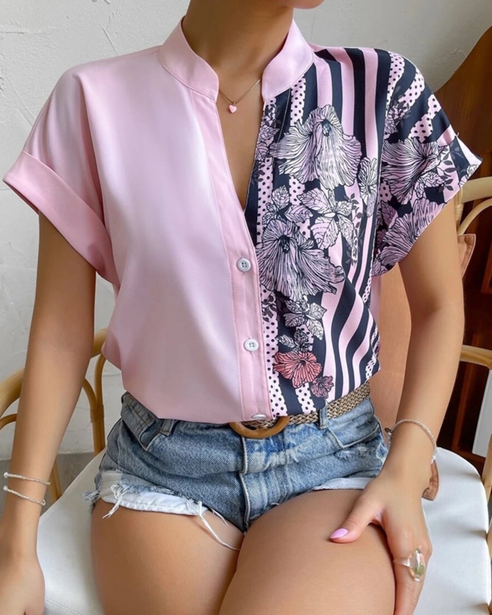 DOUBLE COLOR FLORAL BUTTON-UP SHIRT