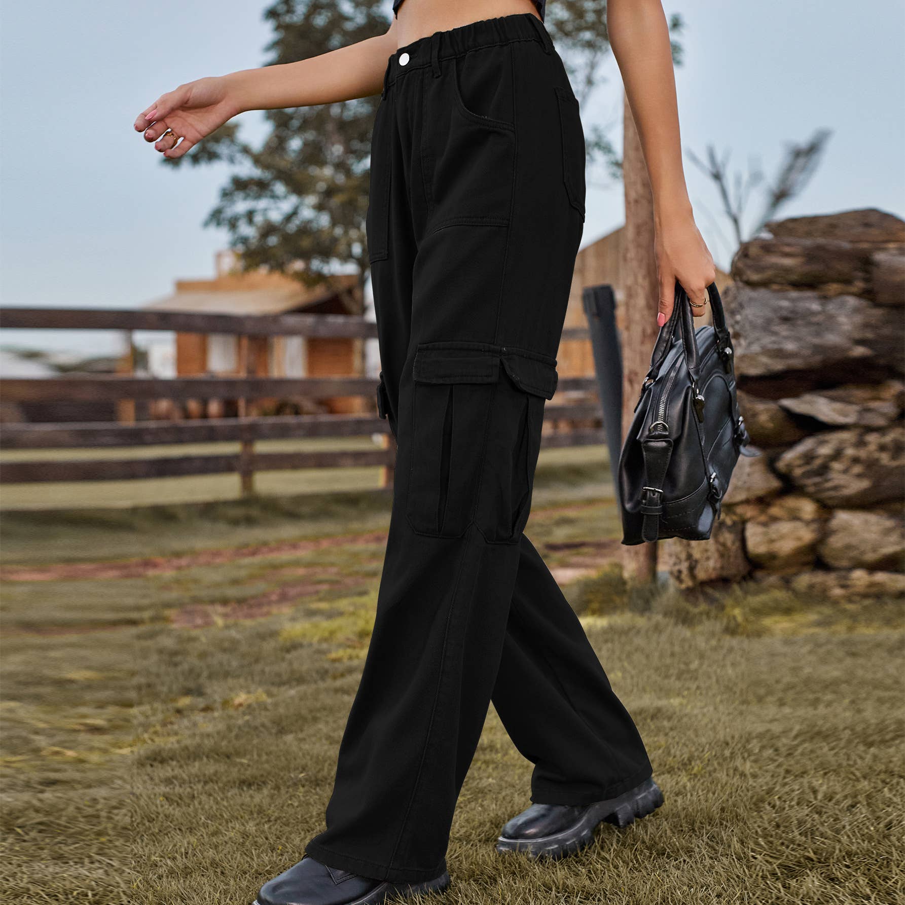 ELASTIC-WAISTED DENIM CASUAL CARGO PANTS